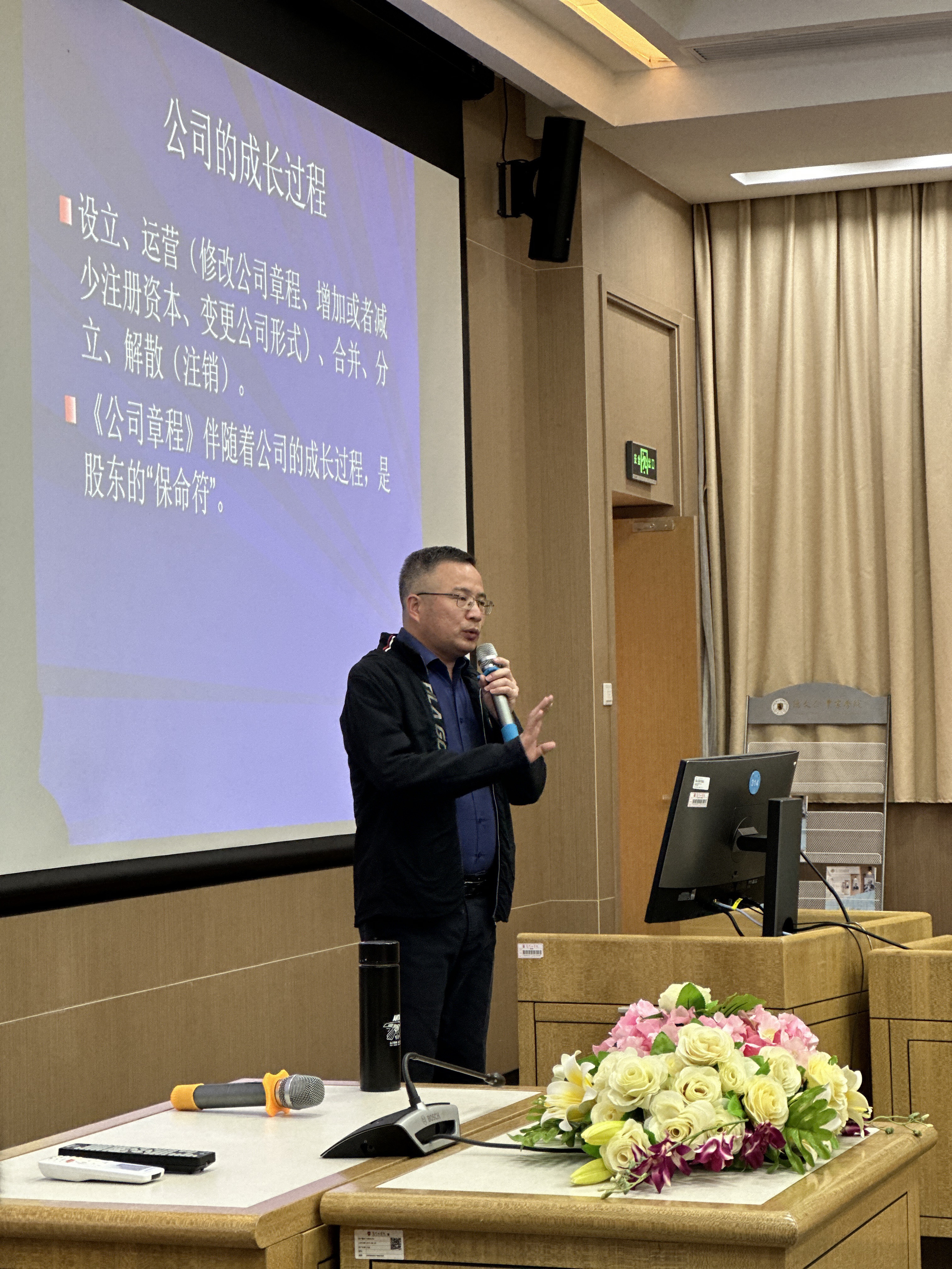 讲座中,黄律师围绕商事主体 “从生到死” 全生命周期,结合新公司法核心条款展开解读。他从公司章程制定、组织机构权责划分等基础内容切入,通过股东知情权纠纷、抽逃出资追收、违规担保等热点案例,生动剖析公司设立、运营、清算各阶段的法律风险与应对策略。针对注册资本认缴期限调整、法定代表人权责界定等新法规重点,黄律师以判例为依托,让复杂法律条文更易理解。