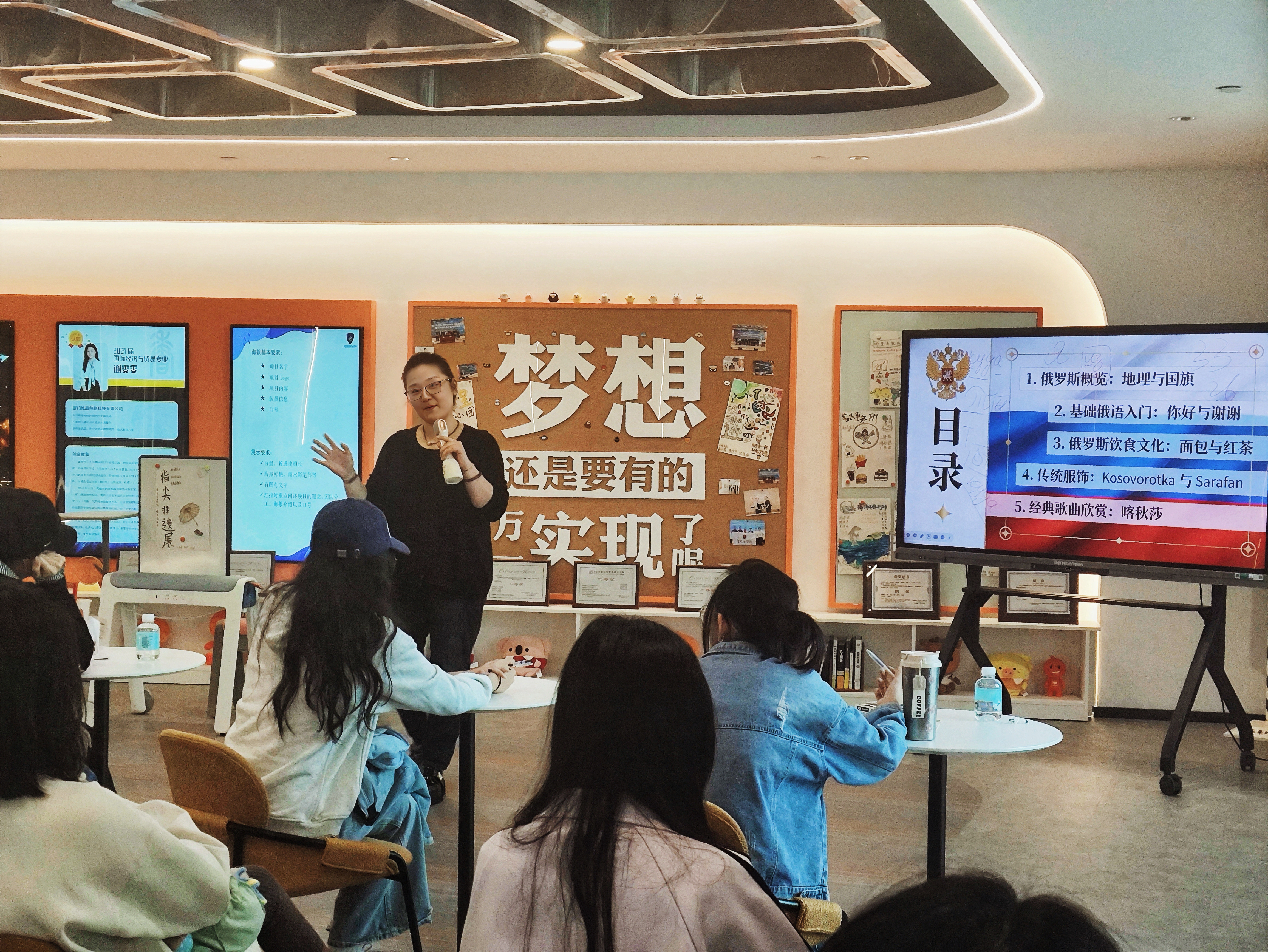 对于简单商务俄语交流用语的学习,姜教授精心挑选了一些实用语句,如“Здравствуйте(你好)”“Спасибо(谢谢)”“До встречи(再见)” 。同学们积极参与跟读练习,在击鼓传花环节的推动下,大家对这些基础但关键的商务交流用语掌握得更加熟练,为未来可能的商务往来储备了实用的语言工具。
