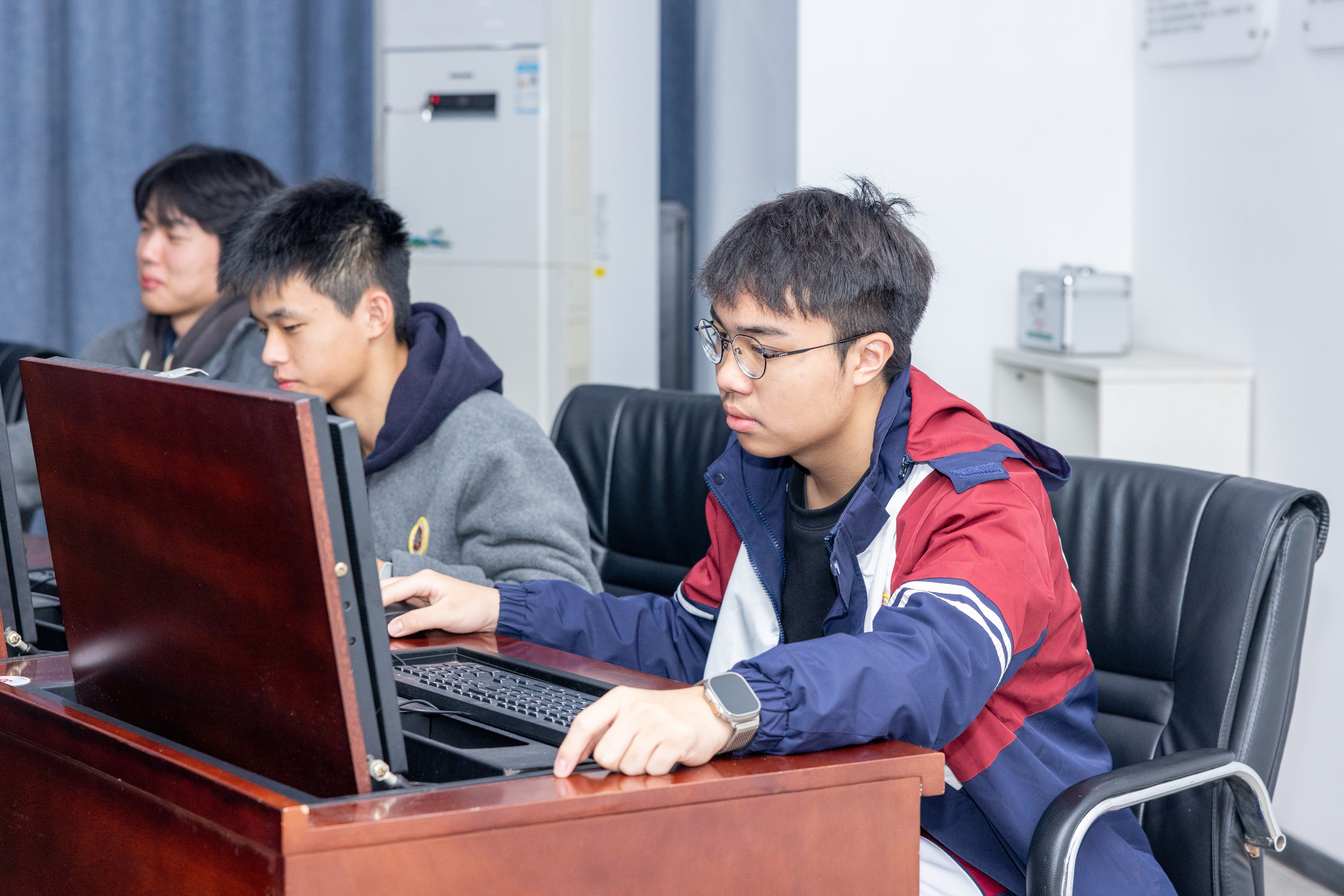讲座之后,在商学院学长学姐的热情带领下,同学们走进商学院实验实训基地。该基地自2017年成功获批省级教学实验示范中心以来,深耕实践教学沃土,在各类高水平学科竞赛中屡创佳绩、载誉颇丰。基地内,先进完备的实训设施错落有致,高度逼真的金融交易模拟场景生动还原,让高中生们仿佛瞬间置身于金融实战的前沿阵地,沉浸式感受金融行业的专业氛围与高效节奏。