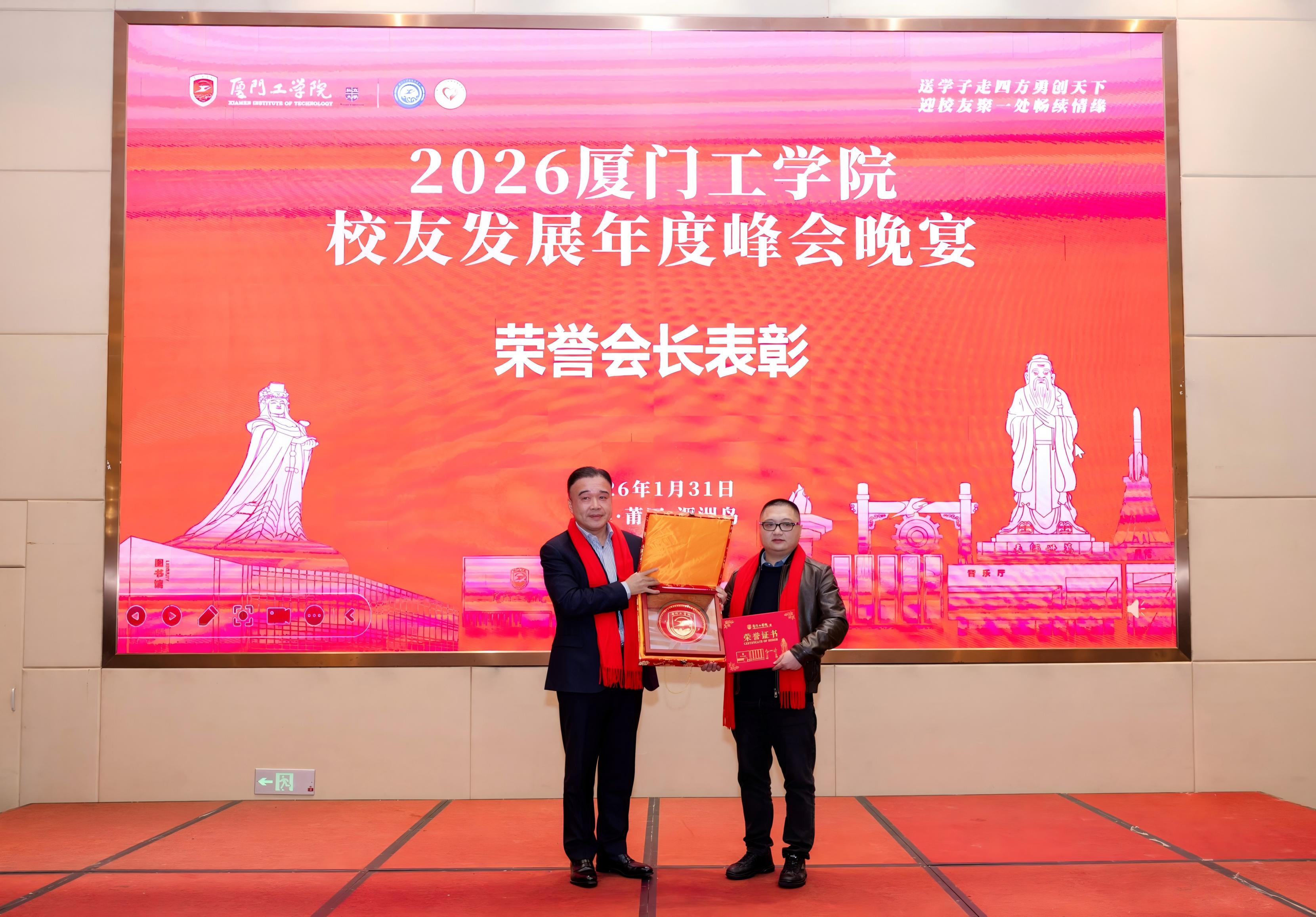 在本次峰会中,商学院校友的积极参与和突出贡献受到广泛关注。厦门校友会的骆少东校友荣获学校“荣誉会长”表彰,作为创会会长,他长期致力于凝聚校友力量,通过奖学助学、社会服务等实际行动,生动体现了校友对母校的深厚情感与责任担当。