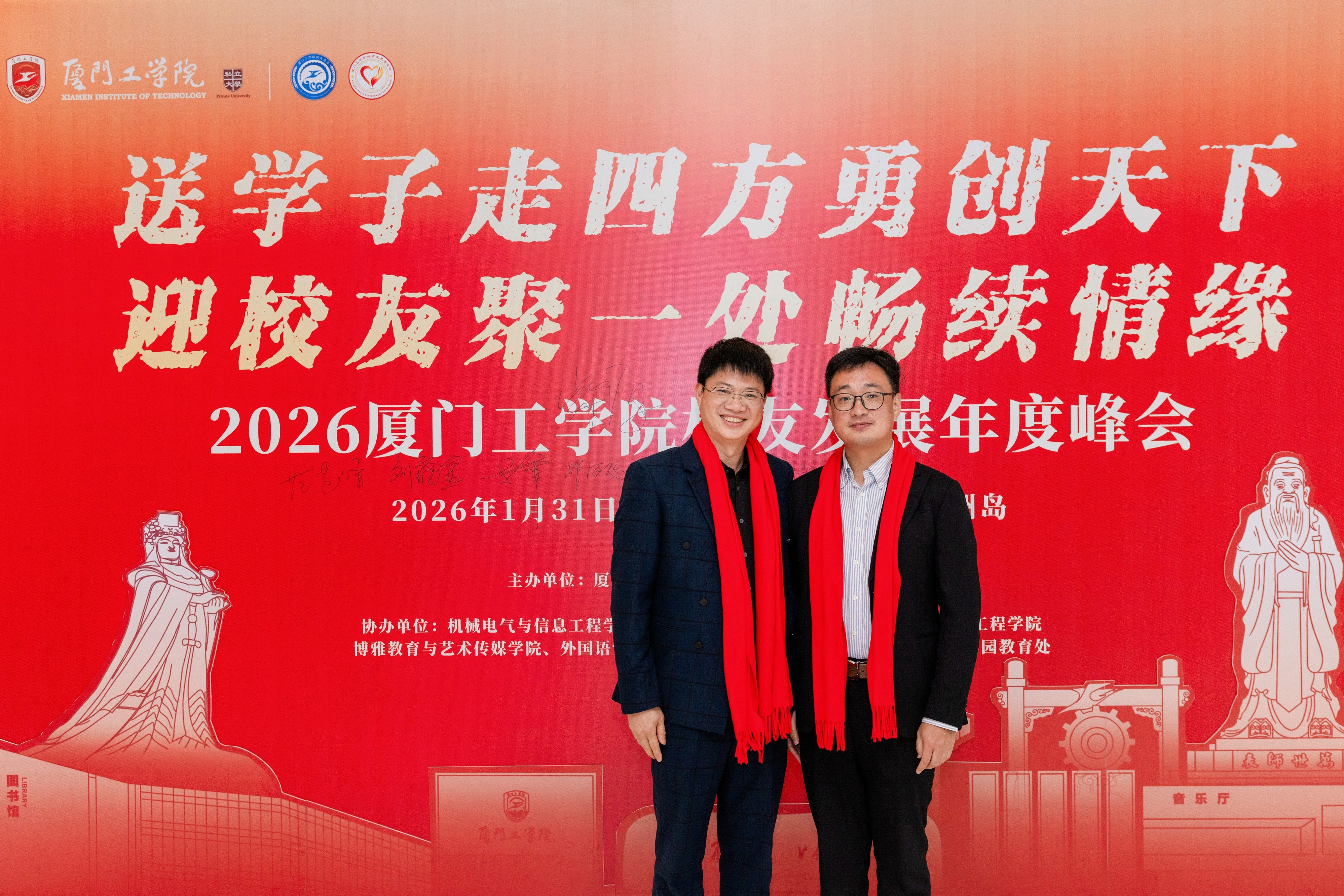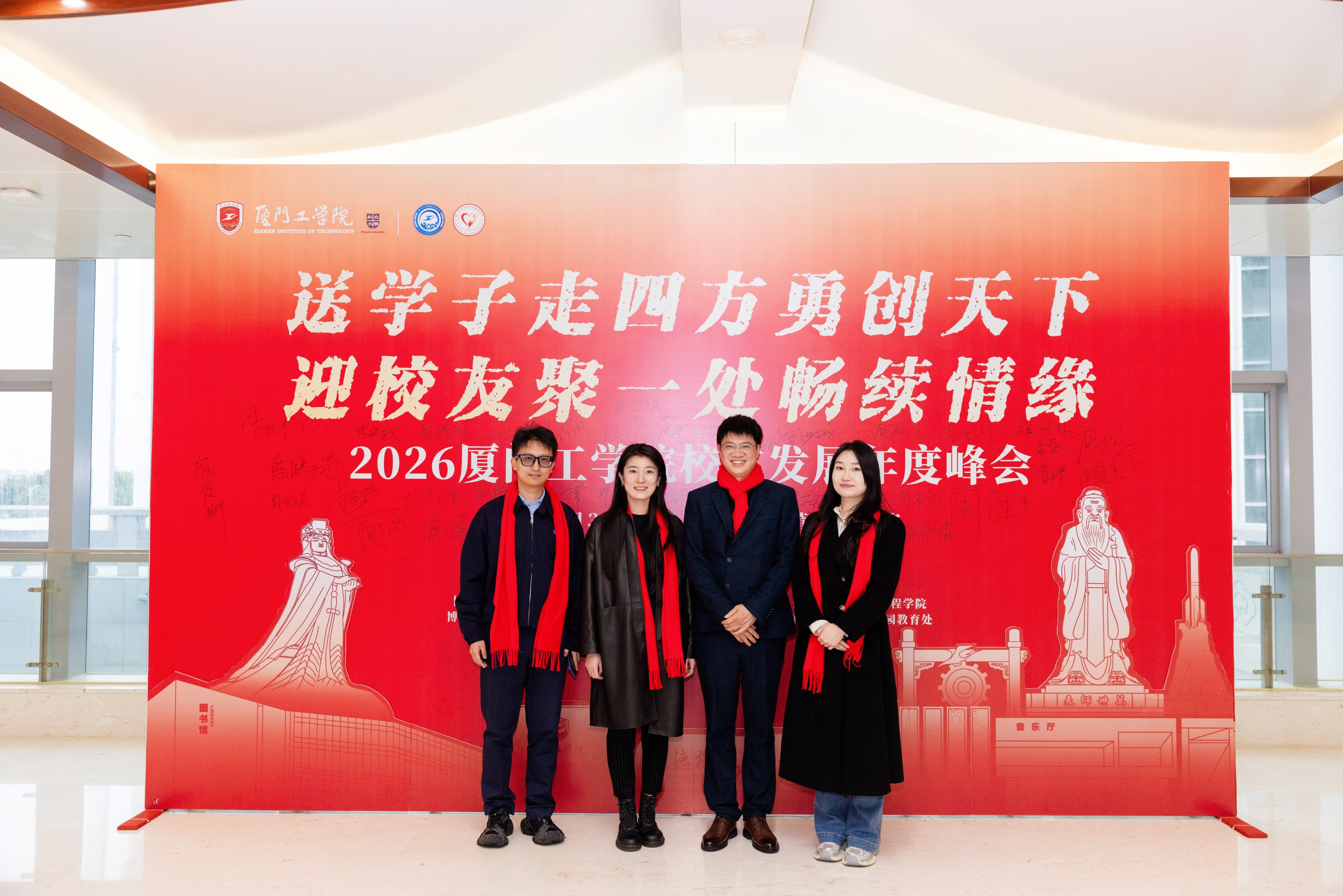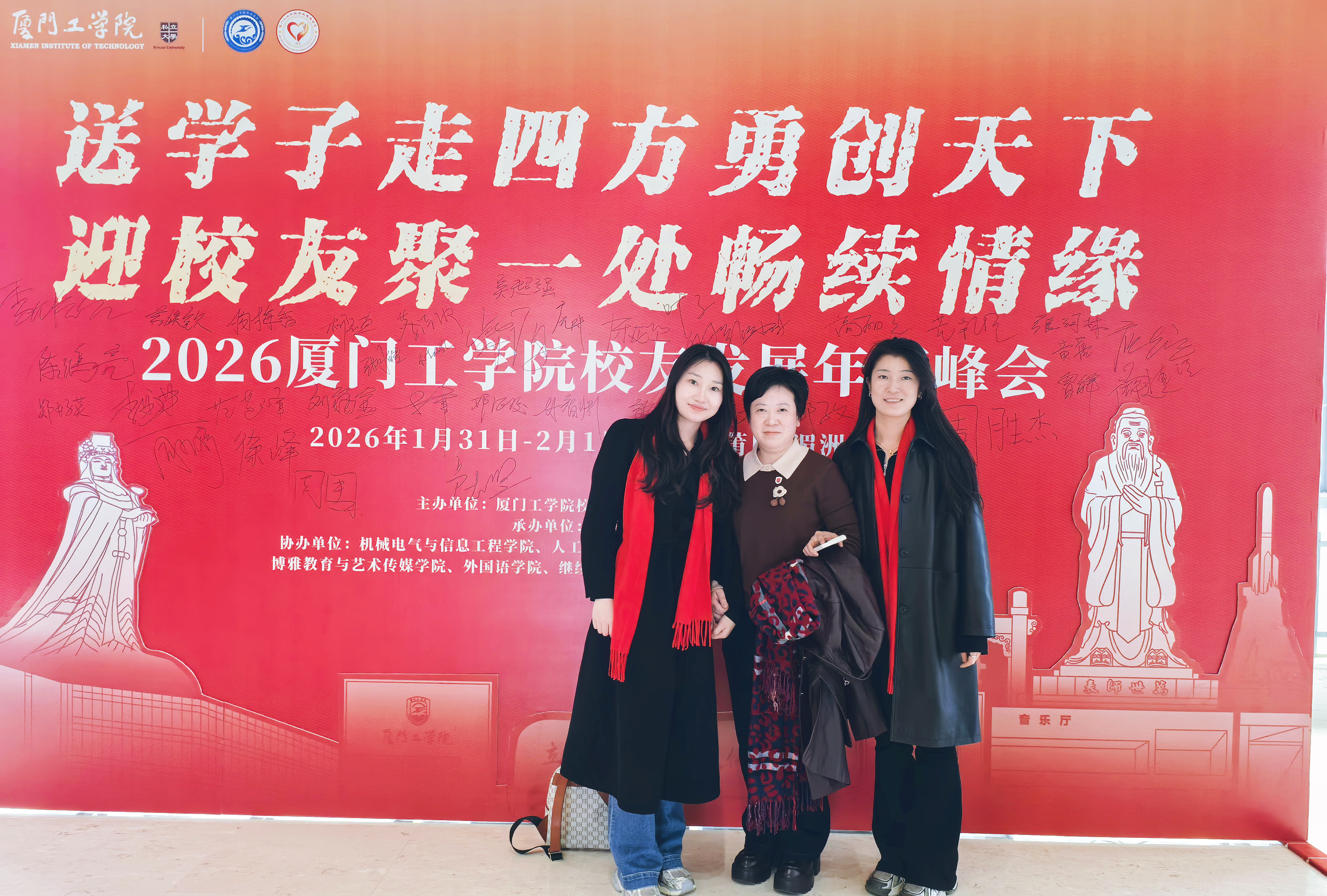 2026年1月31日至2月1日,厦门工学院校友发展年度峰会于莆田湄洲岛举办。在学校与学院的诚挚感召下,二十余位深耕各行各业、勇担重任的商学院校友骨干从全国各地齐聚一堂,以真挚的情感与深厚的凝聚力,为这场盛会增添了温暖而独特的光彩。