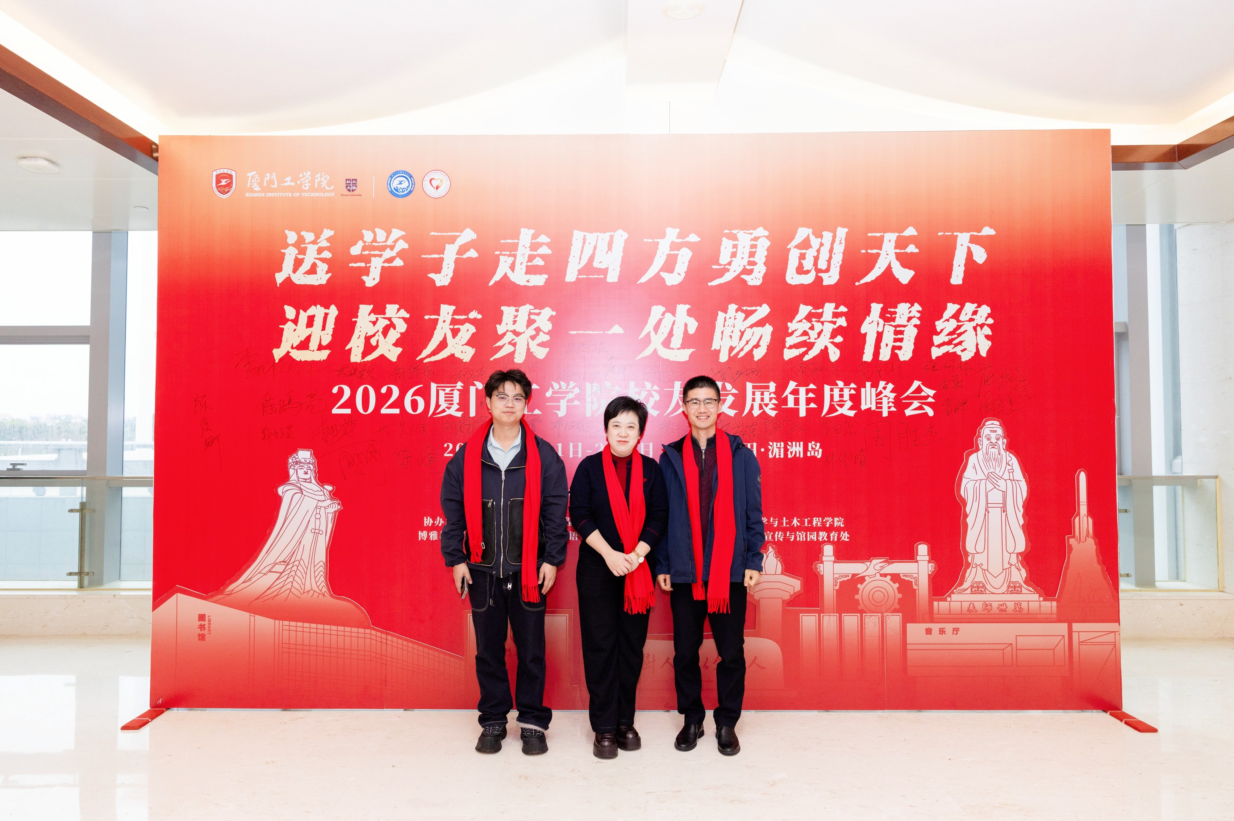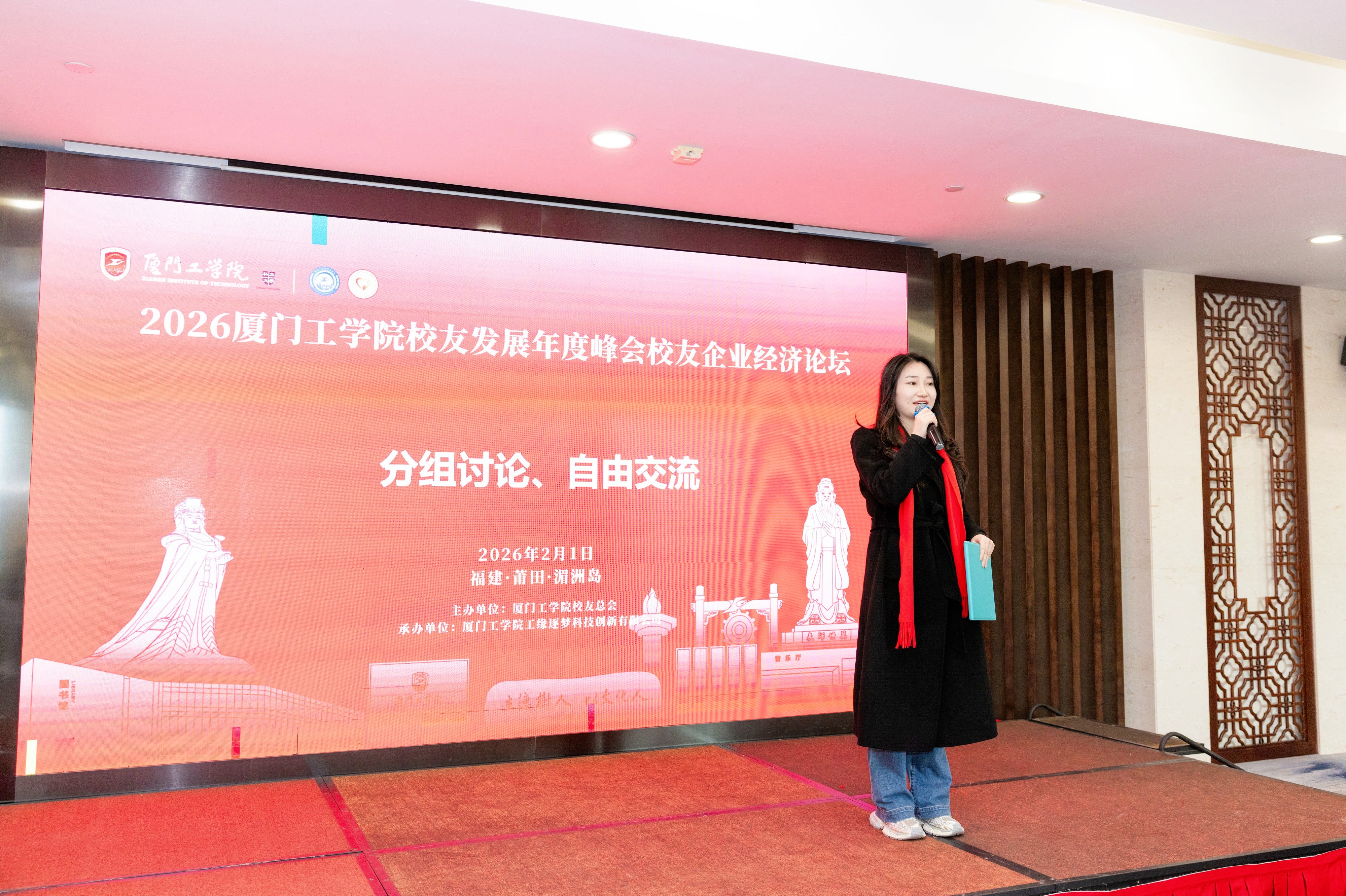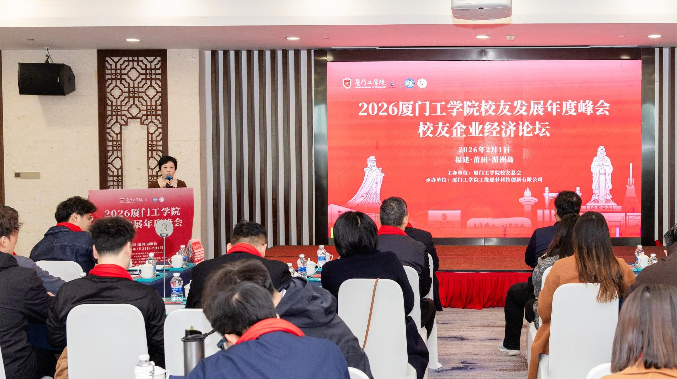 2026年1月31日至2月1日,厦门工学院校友发展年度峰会于莆田湄洲岛举办。在学校与学院的诚挚感召下,二十余位深耕各行各业、勇担重任的商学院校友骨干从全国各地齐聚一堂,以真挚的情感与深厚的凝聚力,为这场盛会增添了温暖而独特的光彩。