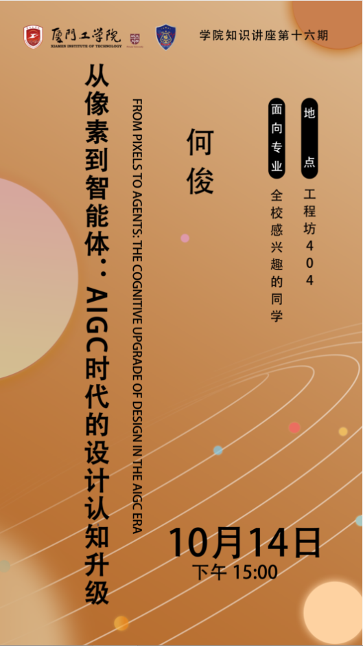 博雅教育与艺术传媒学院讲座预告 | 何俊:从像素到智能体:AIGC时代的设计认知升级