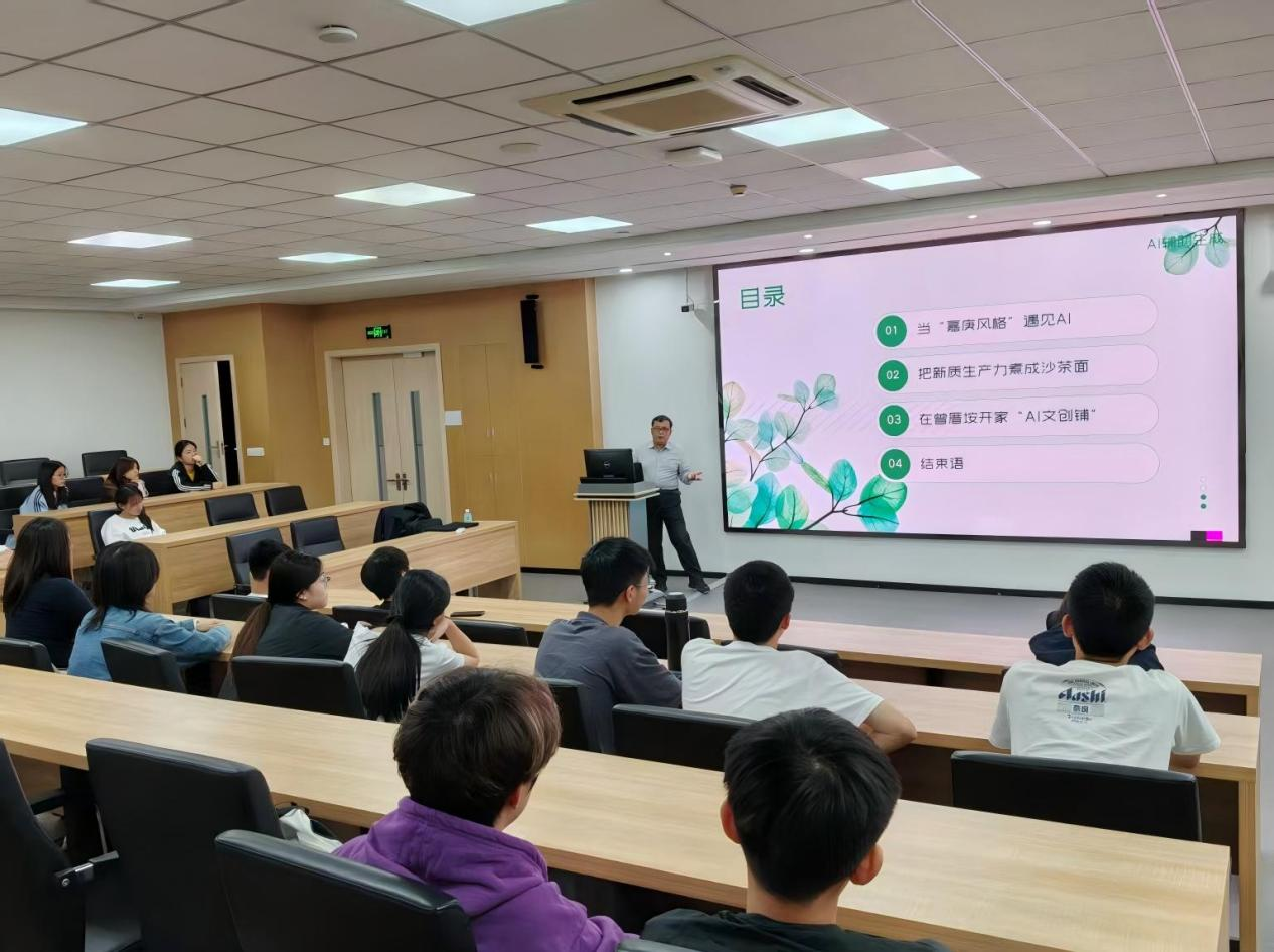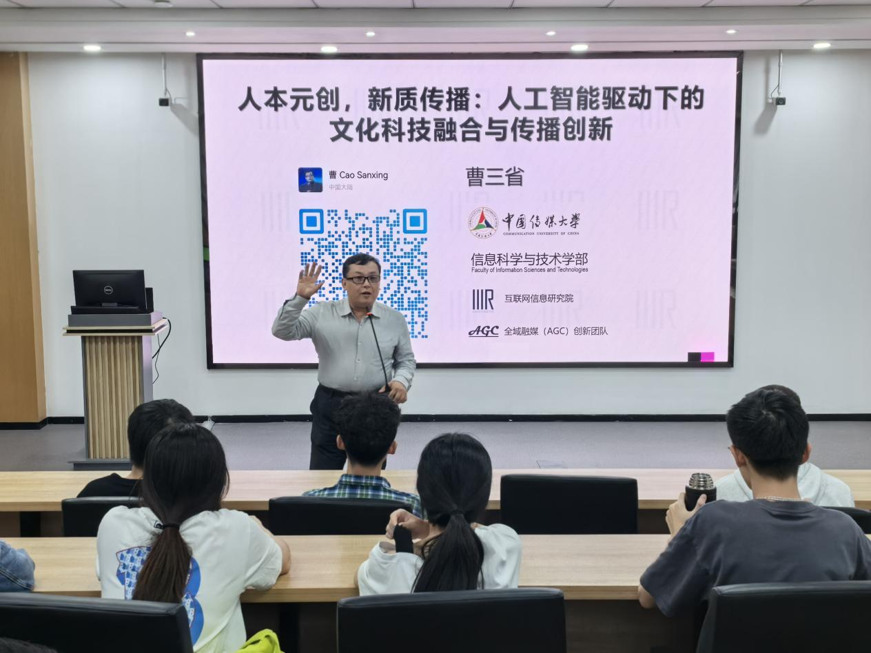 讲座尾声,曹三省教授以“给智慧以足够的信心、给创新以合理的路径、给未来以充分的诚意”寄语在场师生,勉励大家在技术变革浪潮中传承中华优秀文化智慧,坚持守正创新,脚踏实地探索文化科技融合的实践路径。现场师生纷纷表示,本次讲座内容兼具理论高度与实践指导性,不仅深化了对人工智能驱动文化传播创新的理解,更为今后的专业学习与职业发展提供了宝贵启示。