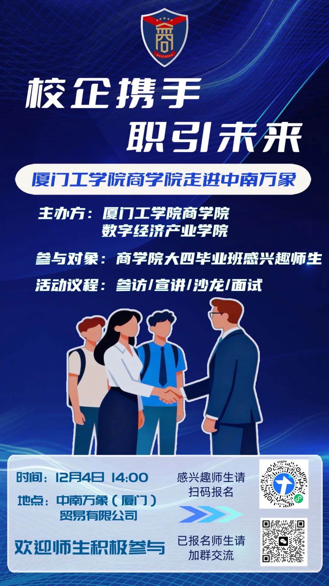 【活动预告】校企携手 职引未来 | 厦门工学院商学院师生走进中南万象
