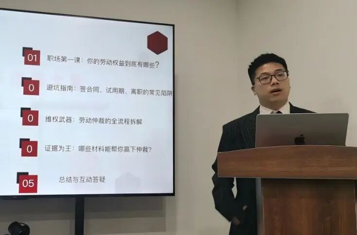 厦门工学院2019届市场营销专业校友蒋梦立律师,以学长身份为现场毕业生带来劳动权益保护专题分享。他聚焦求职、入职、离职全流程劳动法核心要点,结合未签合同欠薪、试用期无故辞退等典型案例以案释法,着重强调试用期工资不得低于法定标准、劳动合同需明确薪资福利细则、遭遇侵权可通过仲裁依法维权,并特别提醒同学们务必关注五险一金相关条款。在互动答疑环节,蒋律师针对实习协议与劳动合同的核心区别、灵活就业人员权益保障等学生关切问题,进行了细致解答,让在场学子受益匪浅。