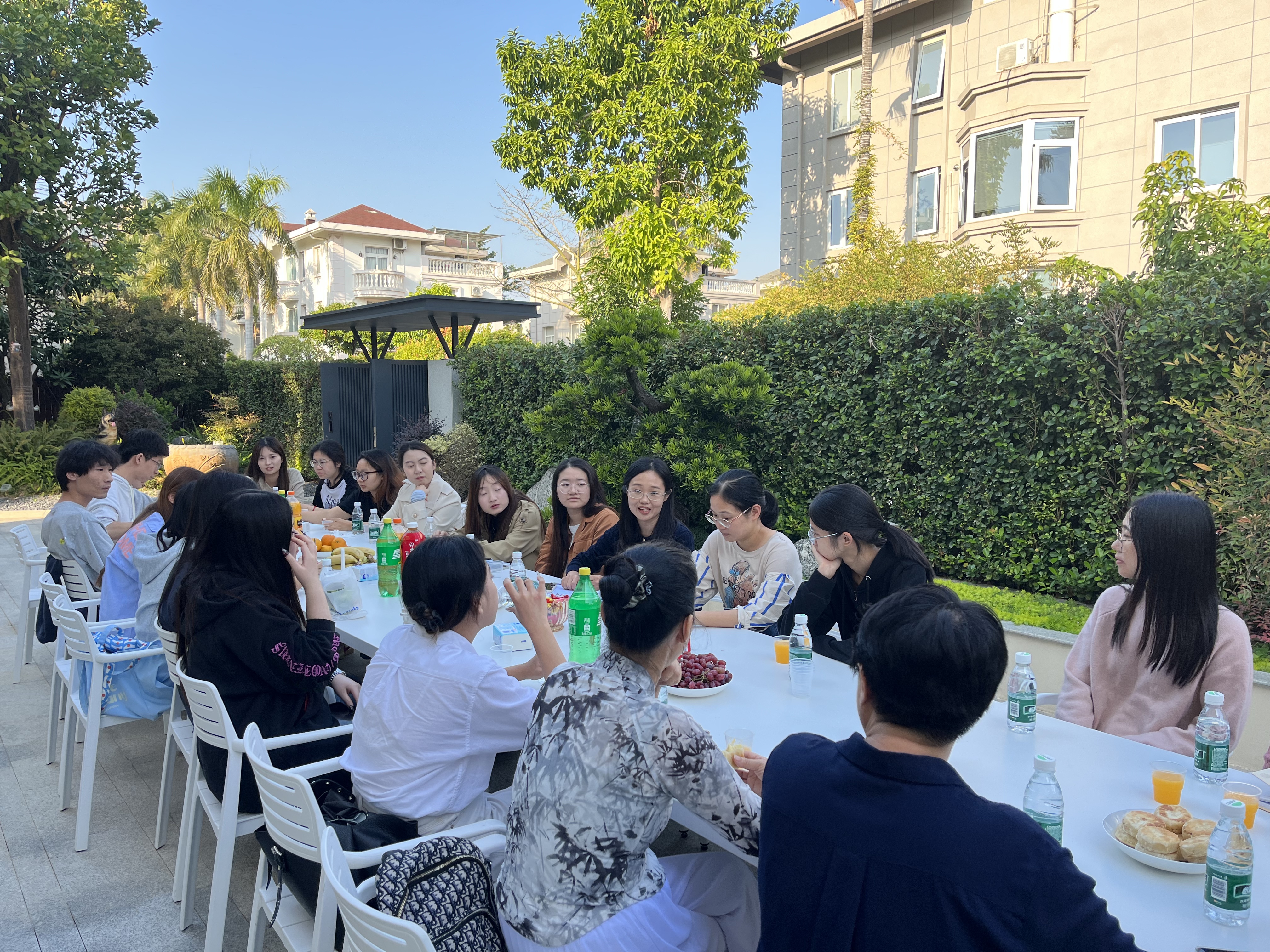 庭院座谈中,公司外贸业务员巫女士和Emil女士,以服装出口到欧美市场为例,为同学们讲解行业知识,从参加展会、开发客户、维系客户到获取订单、履约、收款等,有外贸实务的干货满满,也有商战风云的惊险故事,并提醒同学要珍惜大学时光,夯实专业基础,强化英语能力,同时关注国际形势与市场动态,拓宽国际视野。