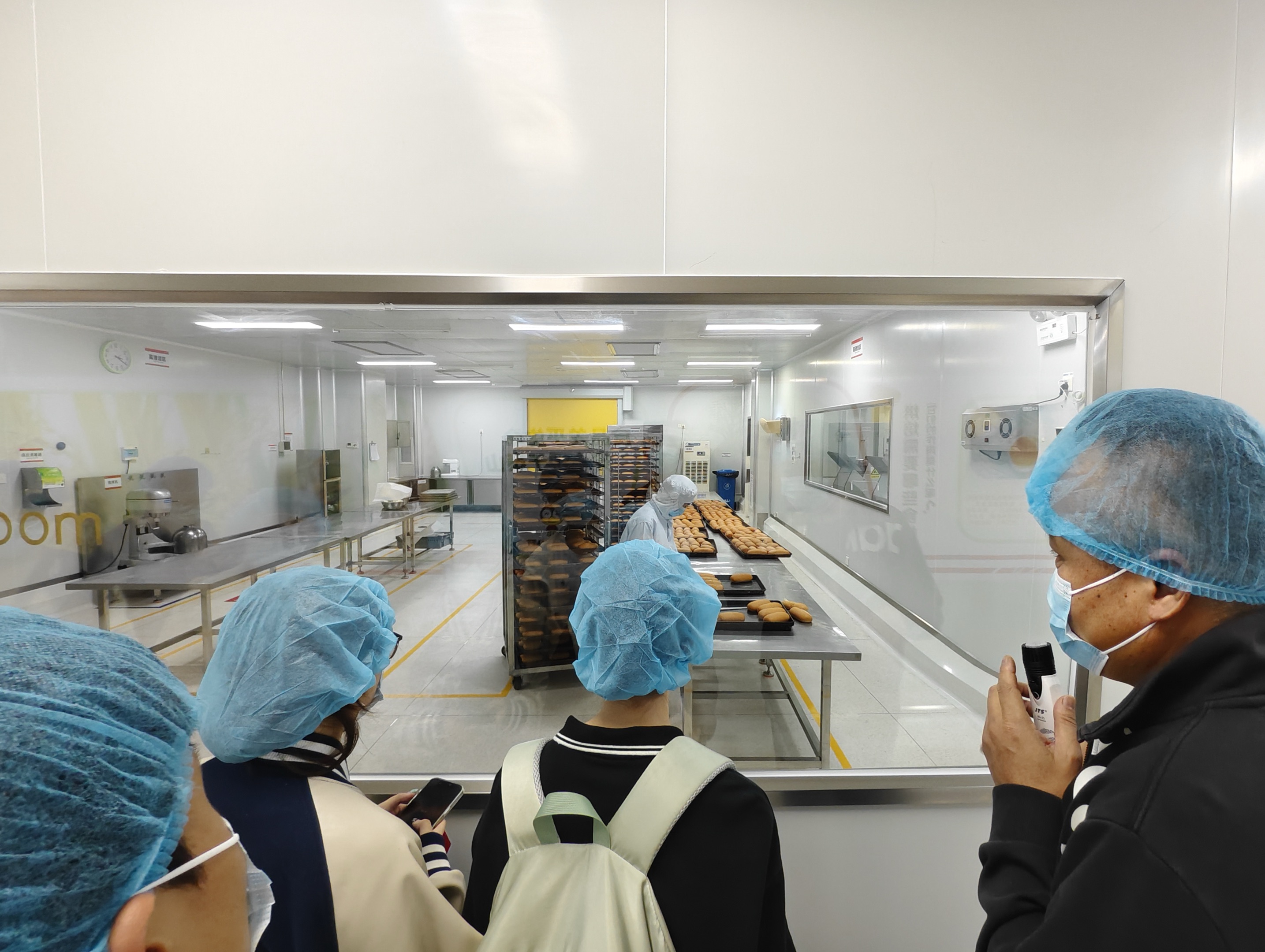 随后,师生们在引导下参观了1688客户体验中心、物流配送中心、DIY文旅空间、烘焙工厂、数据调度指挥中心等。烘焙中心一楼的DIY体验空间里,自动化设备通过精准振动让蛋糕实现完美脱模,传统手工工艺与现代设备的结合引得师生纷纷驻足观察。