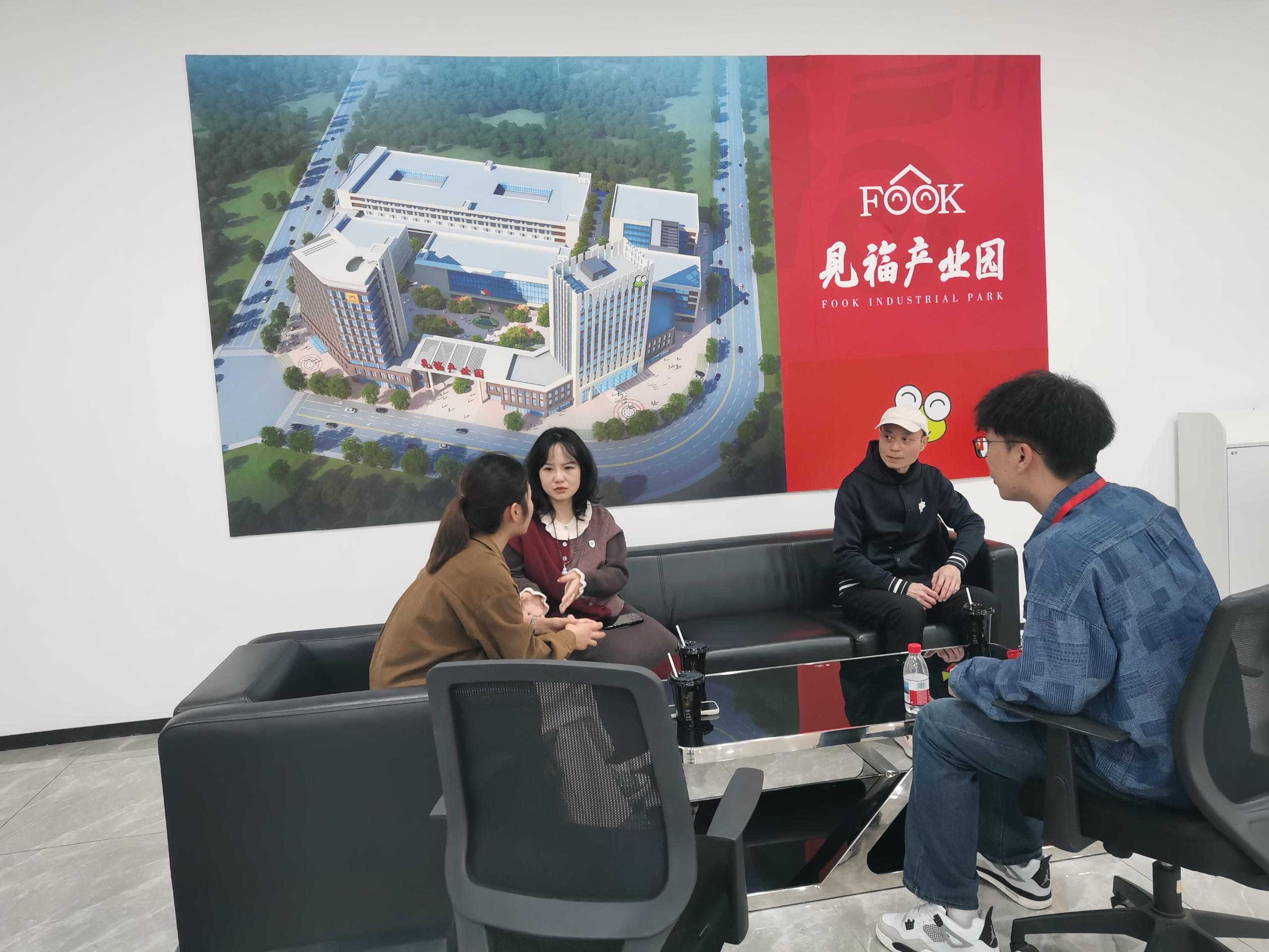 参观结束后,老师们与见福集团管理层移步会议室,举行了以“校企合作,共育英才”为主题的座谈。我校三位教师代表,与夏莉莉总监、冯健经理进行了深入交流,为后续双方进一步在校企案例库共建、实习就业岗位推荐、企业导师进校园等方面进行了探讨。