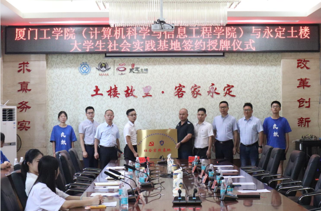 为迎接党的二十大,落实中宣部、中央文明办、教育部、共青团中央《关于进一步加强和改进大学生社会实践的意见》的文件精神,引导大学生自觉走与实践相结合的成才之路,培育高素质、复合型和创新型人才,2022年8月10日下午15:00,厦门工学院计算机科学与信息工程学院党委、团委与福建省客家土楼旅游发展有限公司大学生社会实践基地签约授牌仪式在福建省龙岩市永定土楼景区隆重举行。