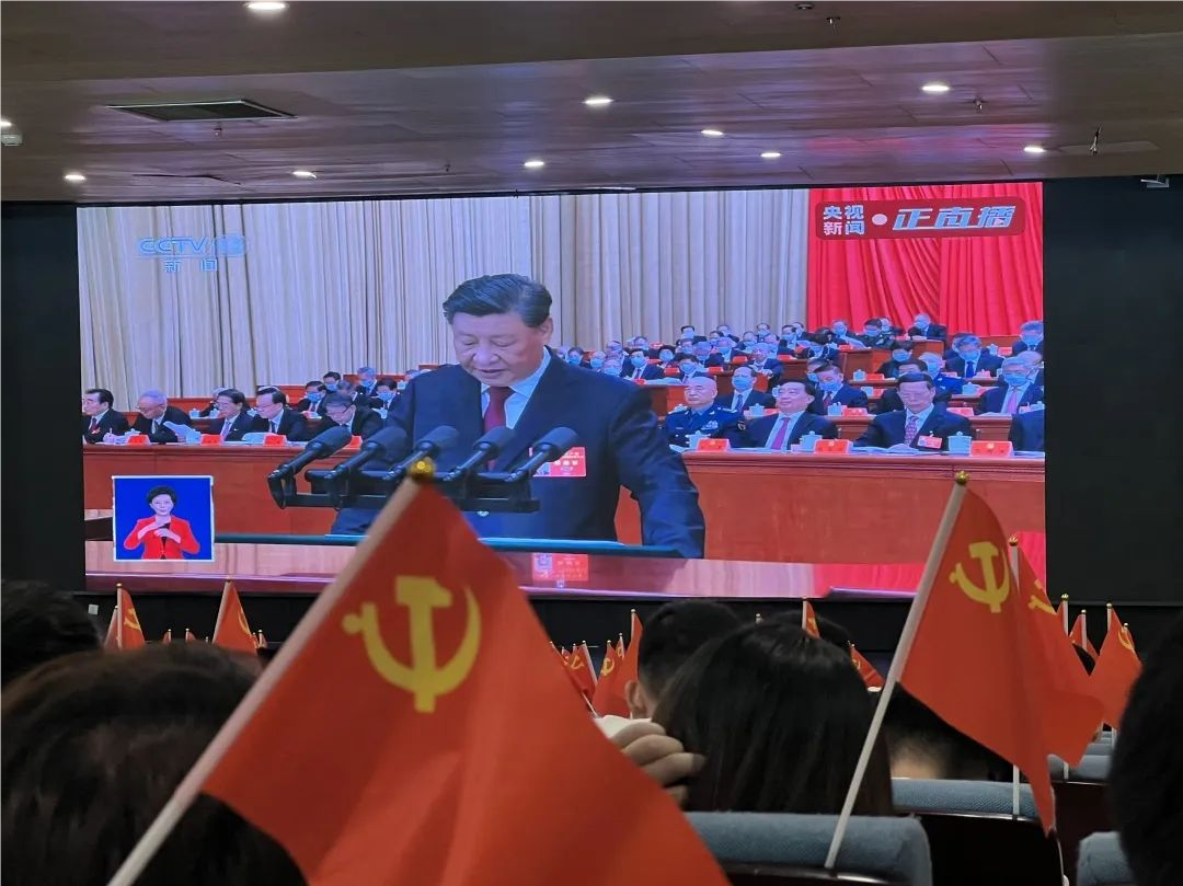 大道如砥,大势如潮。当历史的指针指向2022年的金秋十月,矢志复兴的中华民族,行进到关键一程的关键节点。向着更加开阔的天地进发,“全面推进中华民族伟大复兴”的号角嘹亮,神州大地奏响“强国复兴有我”的激扬乐章。为更好的高举中国特色社会主义伟大旗帜,全面贯彻新时代中国特色社会主义思想,弘扬伟大建党精神,我校于2022年10月16日上午10点组织党员师生在立林报告厅收看党的二十大开幕会。
