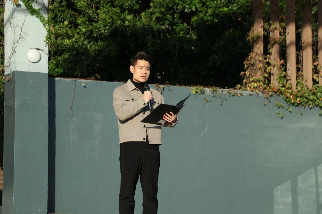 首先,由任?籽敉?学作为新团员在国旗下讲话。