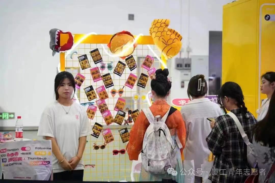 在餐饮位,以谢超凡为组长的志愿者团队负责秩序引导与嘉宾积分核销工作,确保每位嘉宾都能顺利享用美食。在中心装置、权益空间及小玩法区域,李增鸿带领的团队则负责游戏开展、积分兑换及展台协调工作,为嘉宾带来了丰富多样的互动体验。