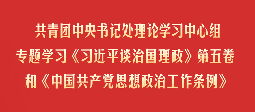 近日,共青团中央书记处第一书记阿东主持召开理论学习中心组学习会,专题学习《习近平谈治国理政》第五卷和《中国共产党思想政治工作条例》,深学细悟习近平新时代中国特色社会主义思想的最新成果,深刻把握党中央对加强青少年思想政治工作的重要要求。