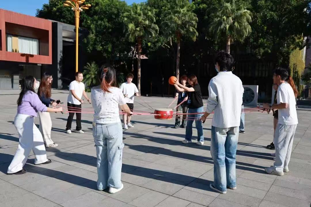 本次活动在学院团委的统筹规划下,由青马班全体师生共同参与筹备。活动伊始,青马班指导老师对学员们进行了动员讲话,强调了团队协作的重要性以及本次素拓活动对于个人成长和团队建设的积极意义,激发了学员们参与活动的热情与积极性。活动共设置了“珠行万里井字棋”“周游世界”“同心鼓接球”“水杯吹气球”和“翻叶子”五个趣味横生且富有挑战性的项目。学员们在各个项目中充分展现了团队协作精神,通过默契配合、相互鼓励,成功克服了一个又一个难关,深刻体会到了团队的力量与重要性。