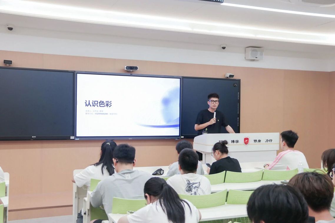 10月13日,两社团再度携手,在厚德大厦开展“认识色彩”主题活动,社团指导教师应志远老师带领成员探索色彩世界。应老师从色彩基础原理切入,用通俗语言讲解色相、饱和度、明度的关系,还让成员直观感受 “同一场景不同色调” 的视觉差异。