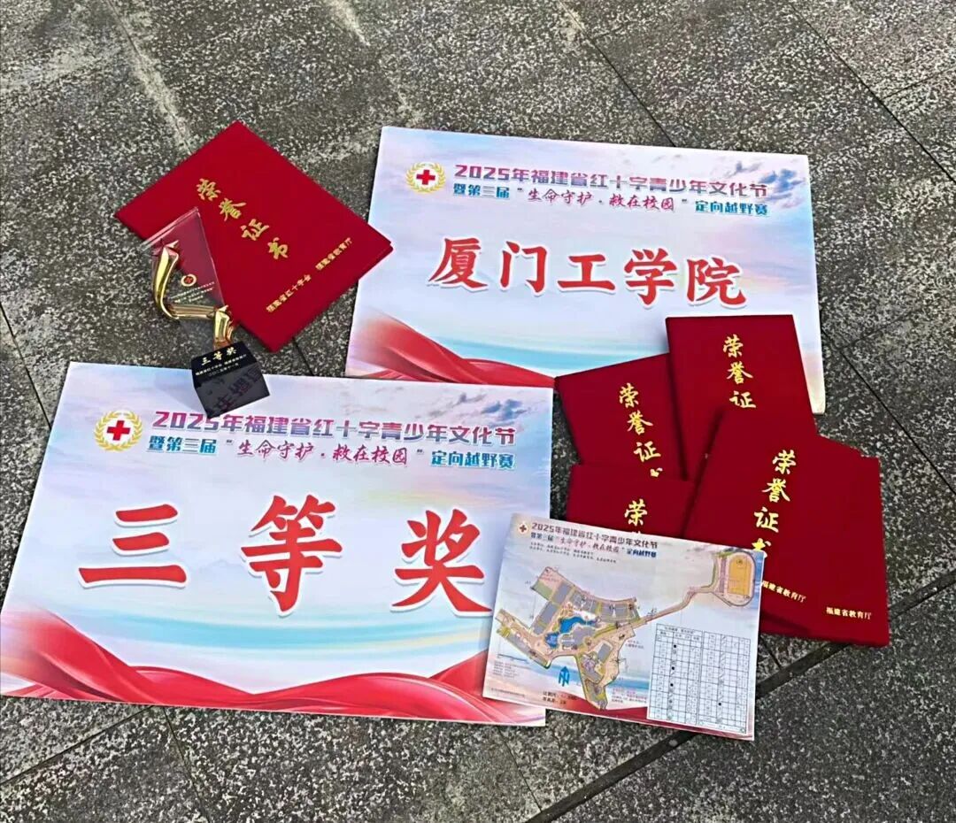 近日,由福建省红十字会、福建省教育厅主办的2025年红十字青少年文化节暨第三届红十字青年团“生命守护·救在校园”定向越野赛在龙岩技师学院顺利落下帷幕。厦门工学院“小爱”青年志愿者协会与厦门工学院健康跑团组成的代表队,凭借扎实过硬的急救技能和高度默契的团队协作,在众多参赛队伍中脱颖而出,成功斩获省级三等奖。