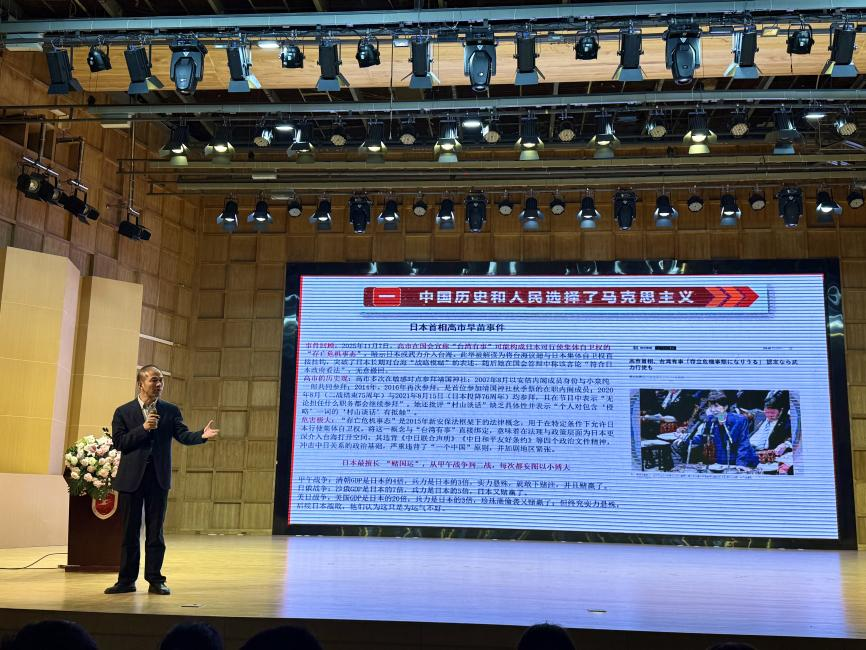 随后,朱瑞元书记回顾了马克思主义在中国传播与发展的历史脉络。他指出,从近代以来农民阶级、资产阶级救国道路的探索,到马克思主义与中国实际相结合,是历史与人民的必然选择。中国共产党在革命、建设的各个时期,始终坚持推进马克思主义中国化时代化,坚持以人民为中心,不断开创事业新局面。