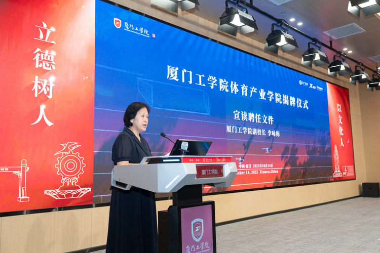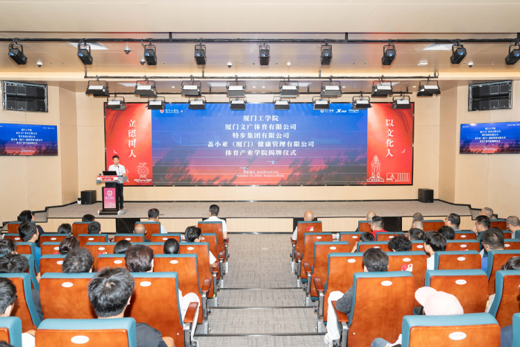 2025年10月14日下午,厦门工学院体育产业学院揭牌仪式在学校立林学术报告厅隆重举行。学校领导、合作企业嘉宾、师生代表齐聚一堂,共同见证学校深化体教融合、推动体育产业人才培养的重要时刻。