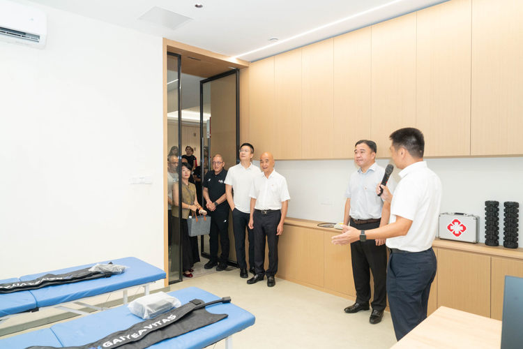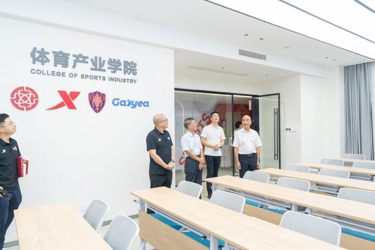 仪式结束后,嘉宾们移步至体育产业学院实地参观,了解学院教学场地、健康检测设备、理疗康复空间等功能区域,并对教学环境给予高度评价。