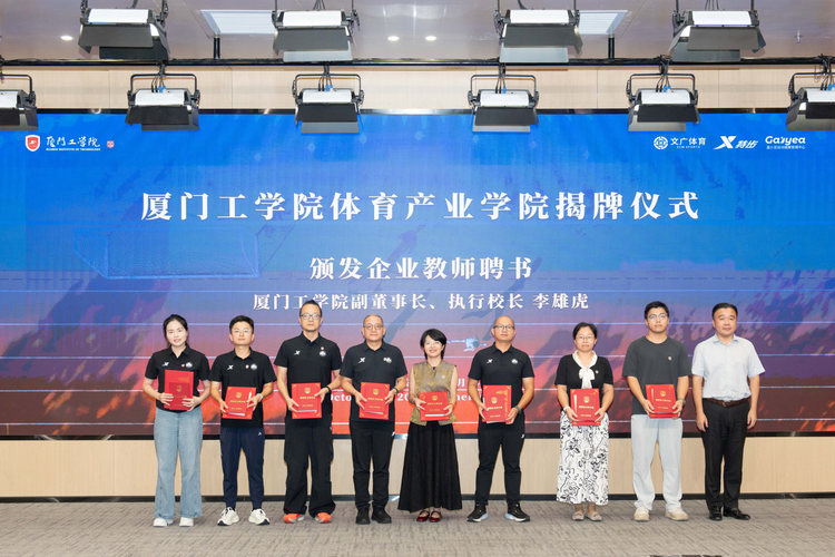 仪式上,厦门工学院副董事长、执行校长李雄虎代表学校致辞。他表示,体育产业学院的成立是学校响应国家“加快建设体育强国”战略、深化高阶教学改革的重要举措。学院将聚焦体育健康与体育赛事产业,与厦门文广体育有限公司、特步集团有限公司、盖小亚(厦门)健康管理有限公司等企业携手,打造集人才培养、科学研究、技术创新、企业服务于一体的协同育人平台。学院将以“真实项目、共建共享、服务成长”为路径,推动教育链、产业链、创新链深度融合,培养“懂体育、善经营、会管理”的复合型应用人才。