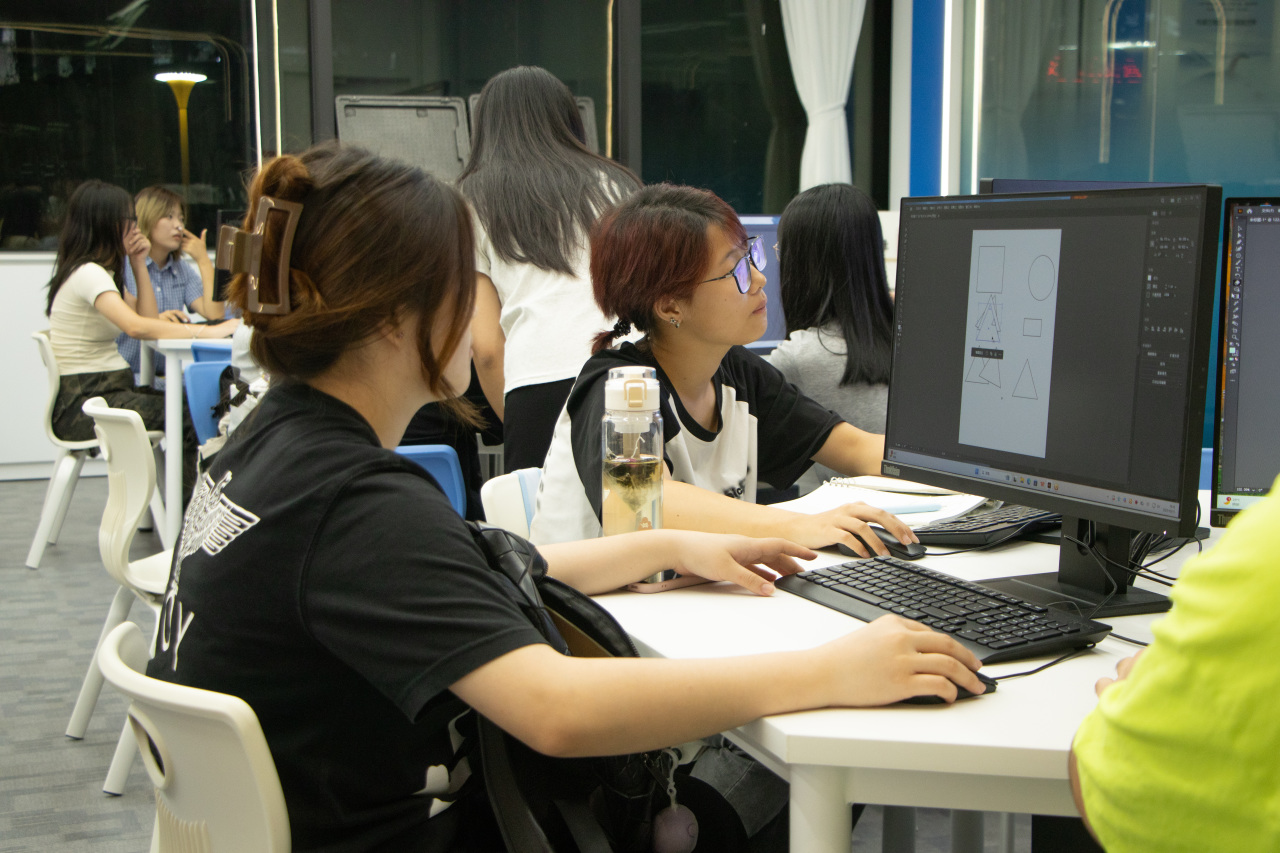 张老师逐步拆解复杂图形构成,从路径勾勒到形状合并,带领学员突破创作 “舒适区”,尝试更具设计感的图形塑造。