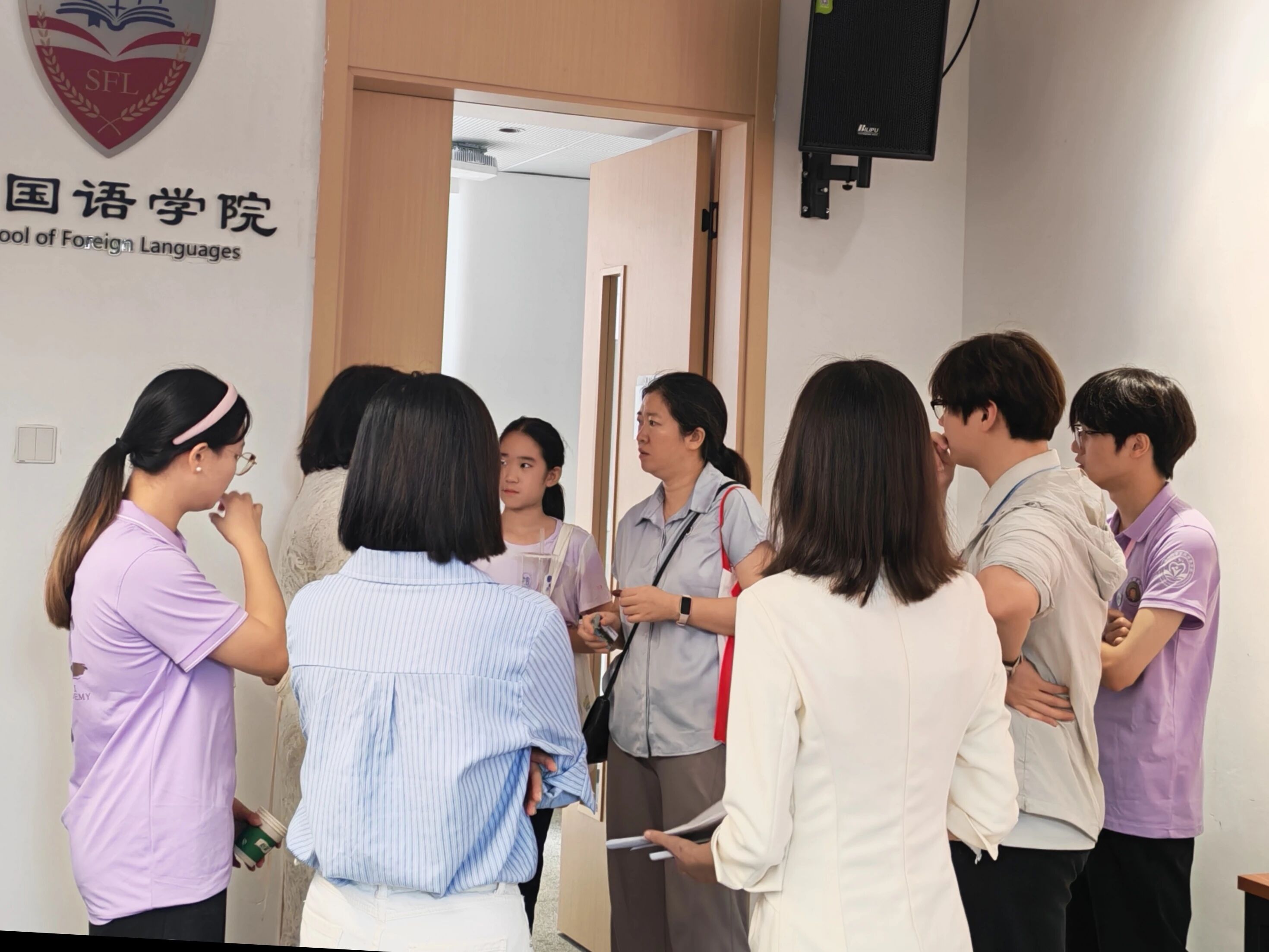 报到当日,志愿者一早于明德大厦408A静待家长与新生的到来。学院贴心准备茶歇,安排专业教师与新生家长面对面交流。执行院长黄颖思、办公室副主任吕思琪、外语类课程教研组副主任王碧荣、辅导员导师郭爽和专任教师罗新梅以及学长学姐就大学生活、学业规划等家长关切的问题予以细致解答。