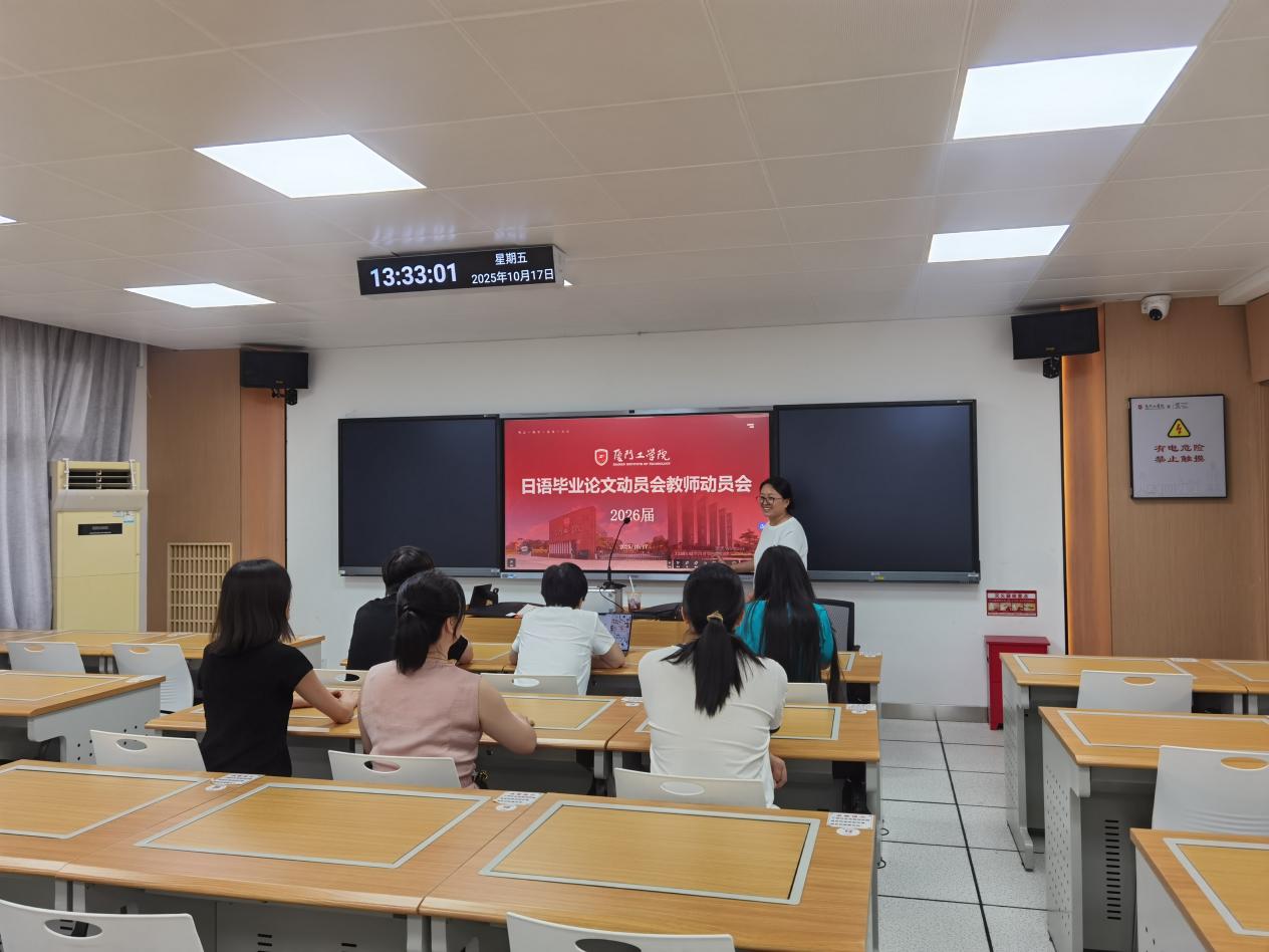 2025年10月17日下午,厦门工学院外国语学院在正心406教室召开2026届日语专业本科毕业论文教师动员会。会议由日语课程教研组尹晓珊副教授主持,全体日语专业毕业论文指导教师参加。
