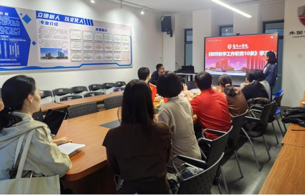 为深入贯彻学校人才培养目标,进一步增强教师责任意识和使命担当,11月4日,外国语学院外语类课程教研组、公共外语课程教研组分别组织教师开展《教师教学工作职责10条》专题学习活动。学院全体教师认真领会文件精神,全面把握工作要求,努力将“教书育人”使命落实到日常教育教学全过程。