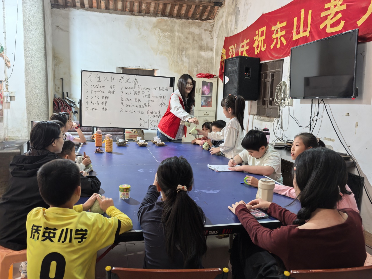 为进一步弘扬中华优秀传统文化,使其在青少年心中生根发芽,2025年11月5日,外国语学院与侨英街道磁窑社区再度携手开展“香包文化”主题活动。此次活动将非遗体验与外语学习深度融合,为孩子们精心打造了一场集知识性与趣味性于一体的文化盛宴。