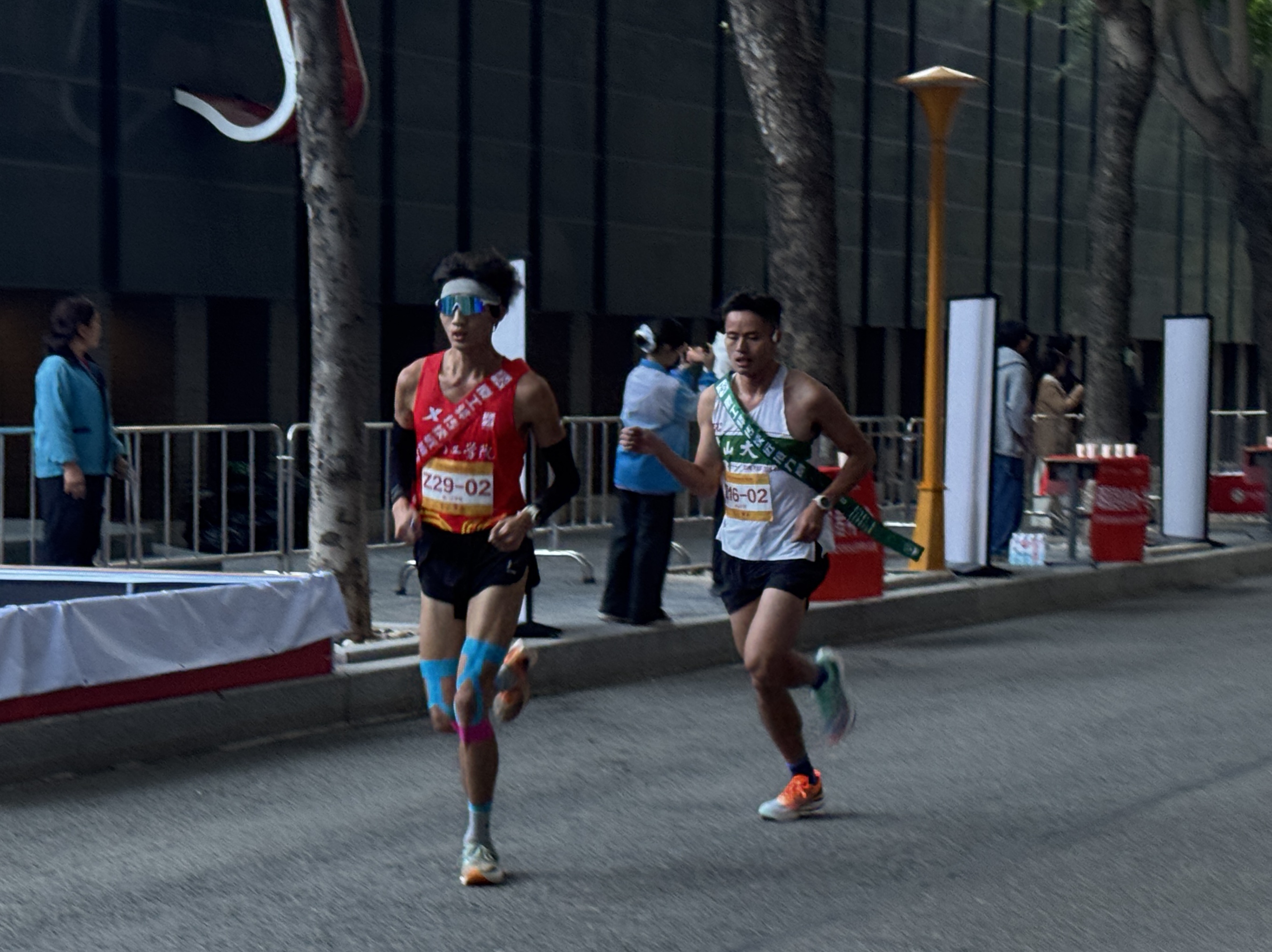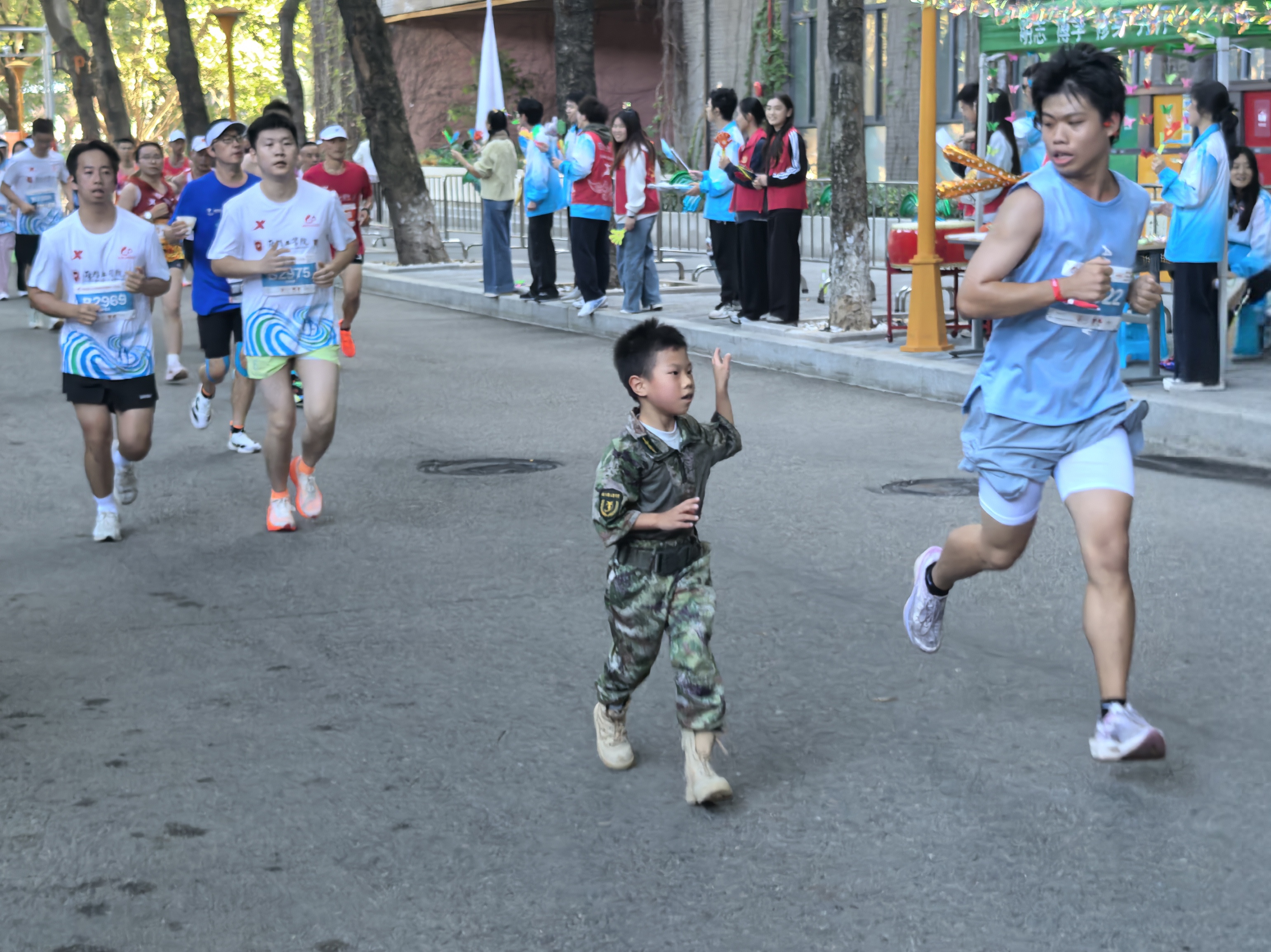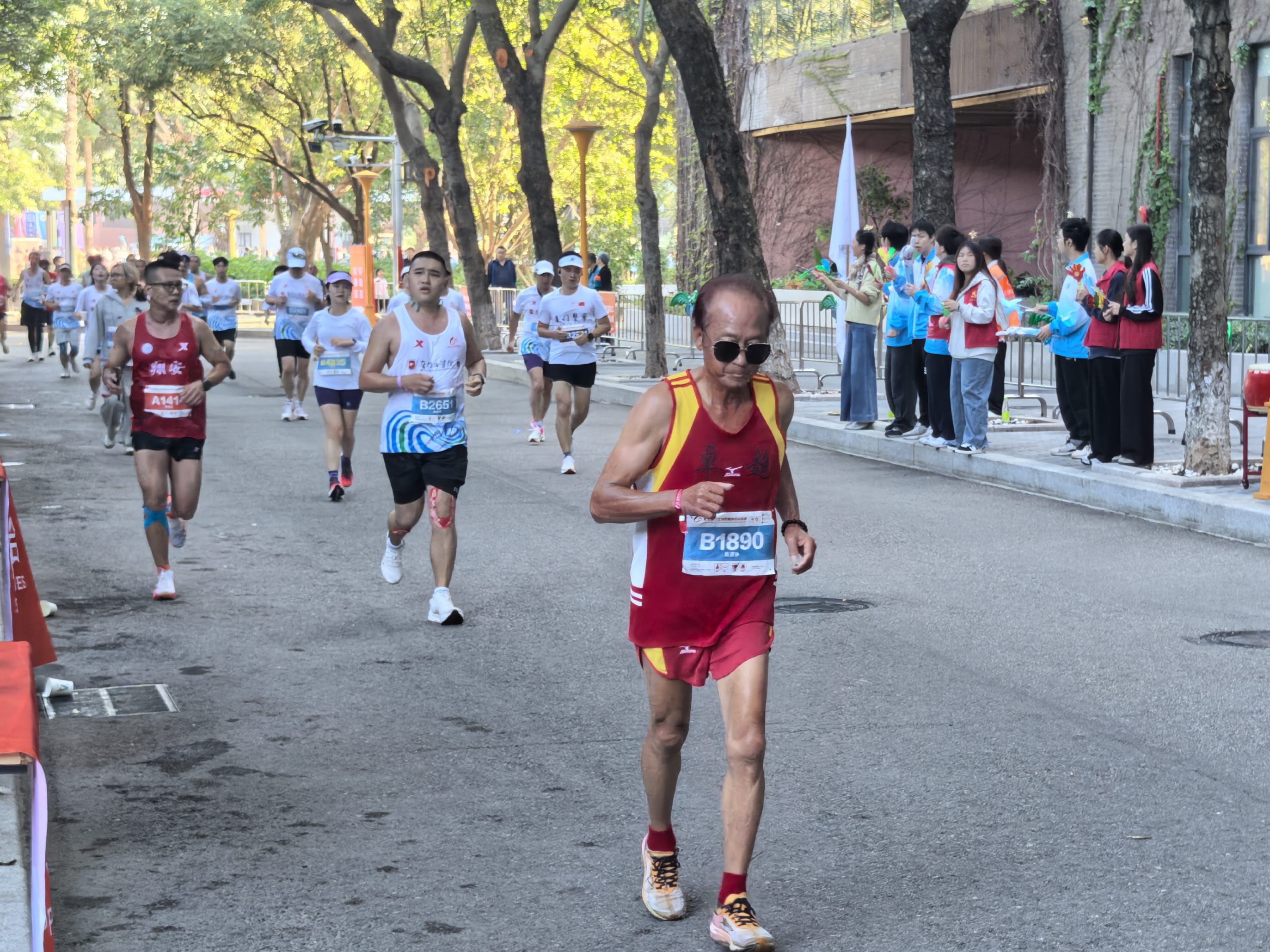 跑道两旁,志愿者同样成为动人风景。外院师生以铿锵的助威声,应和着激昂擂鼓,将力量与信念传递给每一位跑者。
