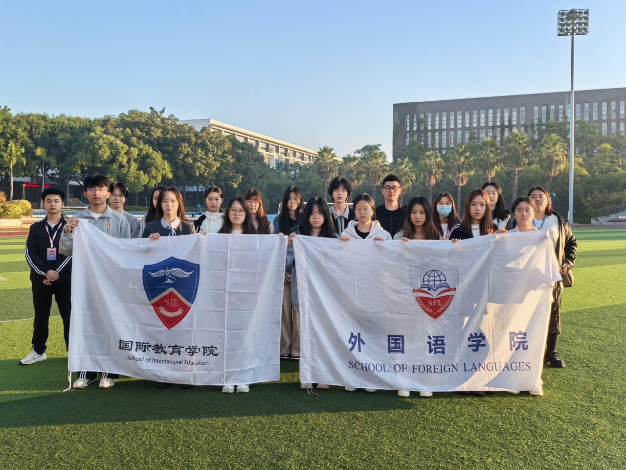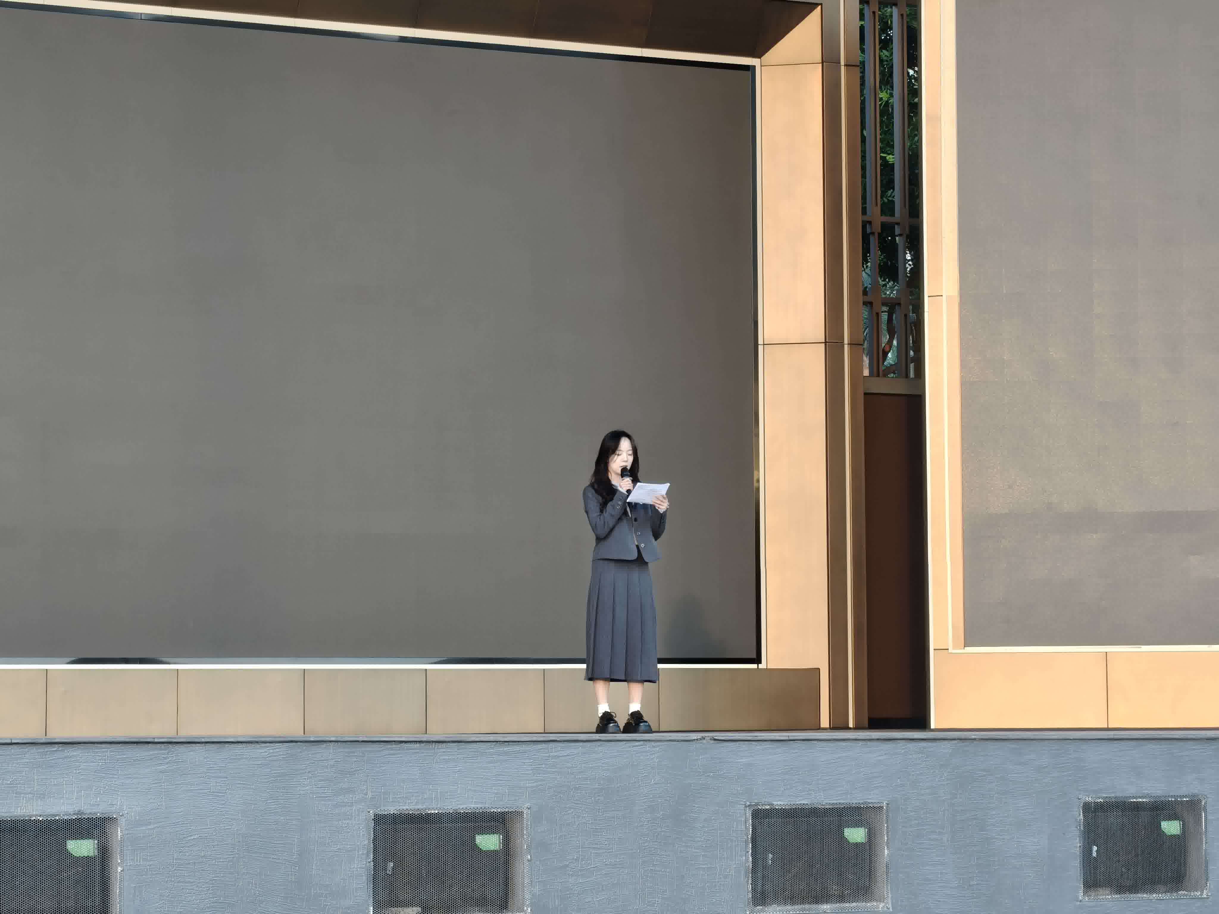2025年12月1日清晨七点,外国语学院全体师生齐聚国旗下,举行庄严的升旗仪式。