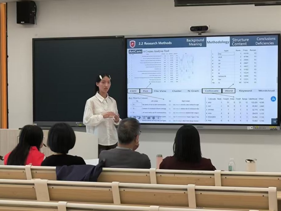 答辩过程中,同学们以流利的英文汇报了选题立意、理论框架、研究设计及创新思考。评审教师认真听取陈述,从学术规范、研究可行性、方法运用、案例选取等方面进行提问与点评,并提出具有针对性、可操作性的优化建议。师生之间问答互动充分,现场氛围活跃。