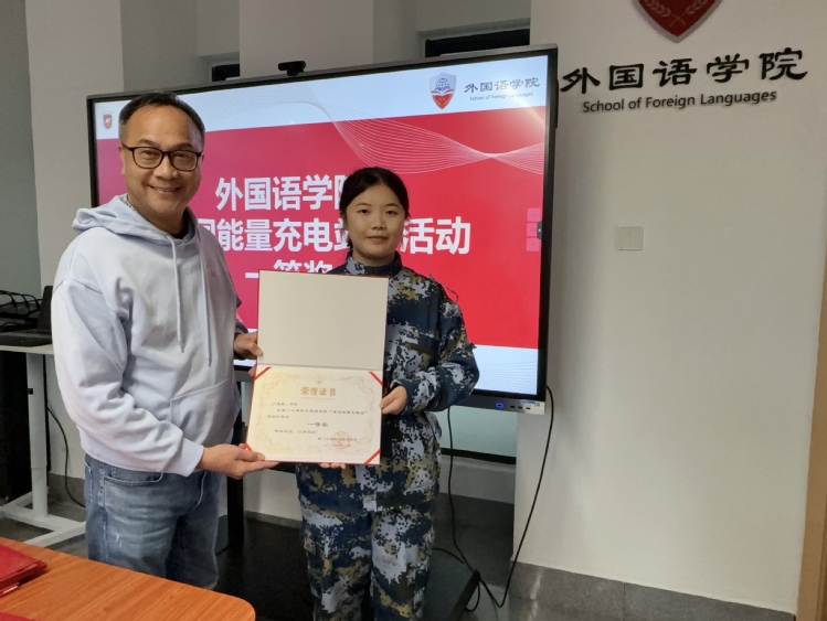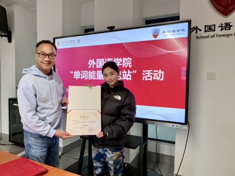 老师们为获奖同学颁发了荣誉证书与奖品,并向他们表示热烈祝贺。老师们希望同学们能将此次活动中展现的毅力、专注与热情延续到未来的专业学习与个人成长中。外国语学院将继续探索多元化的育人形式,激发学生的学习内驱力,助力每一位学子在知识的海洋中扬帆远航!