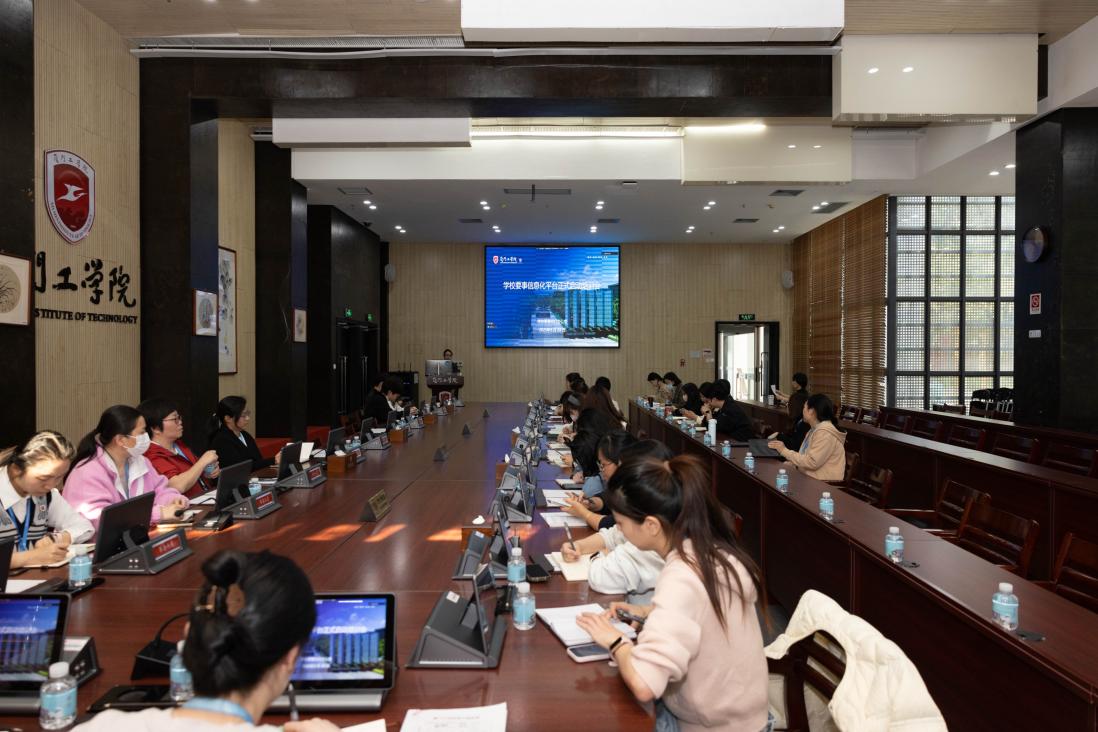 3月24日下午,学校要事执行办公室在政务大厦启贤会议室组织召开学校要事信息化平台正式启动培训会。本次培训采用线上线下相结合的形式,各单位负责人及学校要事兼职成员共70余人参会学习。