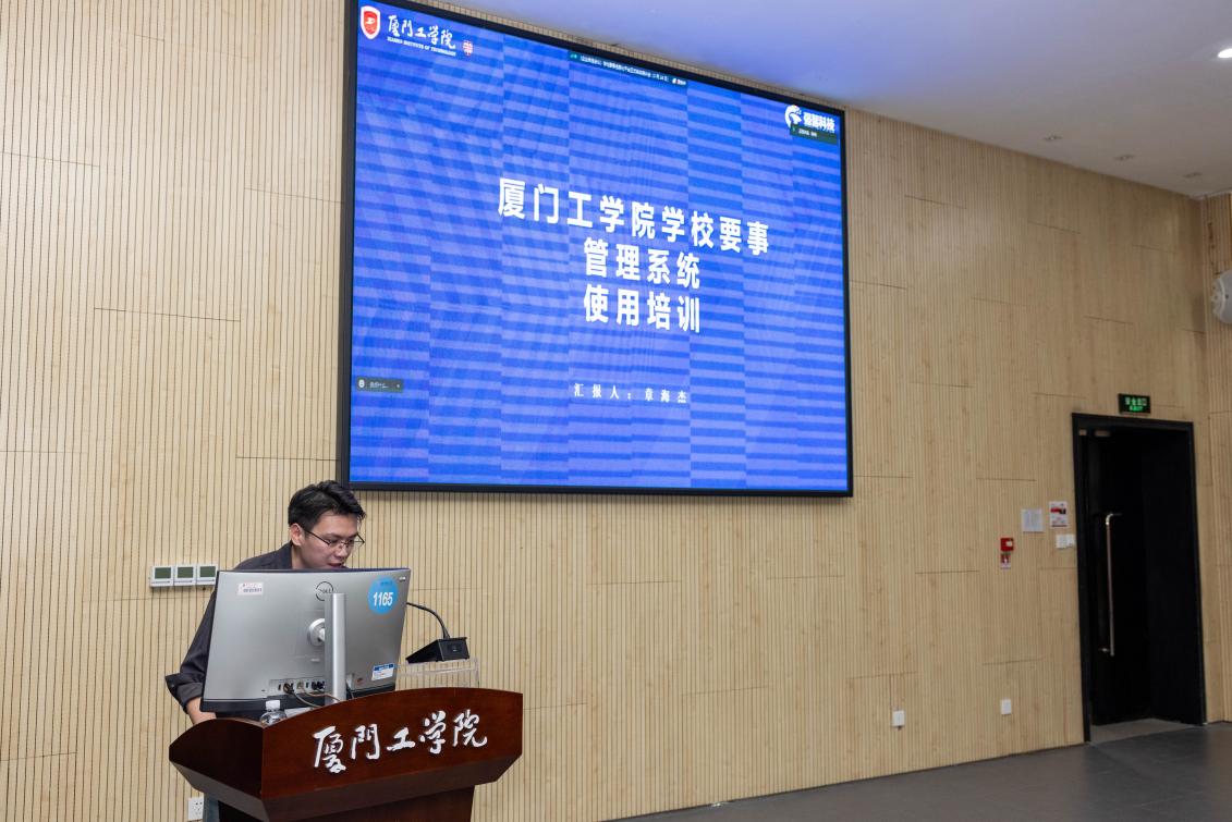 会上,学校要事执行办公室主任蓝素端向各单位在平台建设过程中的大力支持表示感谢,随后向与会人员汇报了平台开发建设的总体思路以及学校要事线上办理与审核的整体流程。