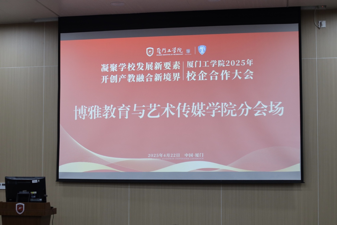 厦门工学院2025年校企合作大会博雅教育与艺术传媒学院分会场活动在博雅大厦三楼植艺厅举行,围绕校企合作、文化传承、人才培养及传播专业发展展开交流。