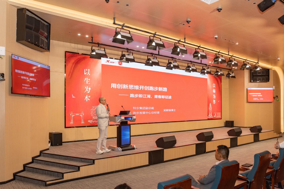 厦门工学院2025年校企合作大会·缘融论坛分会场在立林学术报告厅举行。论坛中,特步集团副总裁、跑步发展中心总经理吴联银博士以“用创新思维开创跑步新路”为主题展开分享。