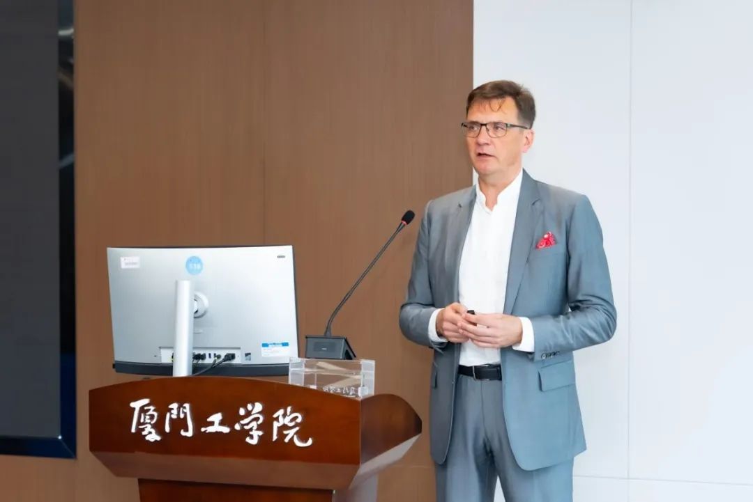 Vesa Taatila校长表示,很荣幸到访厦门工学院。图尔库应用科学大学作为芬兰应用型大学,下设5个学院,学生毕业率高达90%。Vesa Taatila校长表示两校之间的共同点都是以学生为中心。学校宗旨是支持区域发展,聚焦绿色经济、提升生活质量、助力海岸发展、优化居民线上线下工作环境四大方向,强调科技推动人类发展。学校特色鲜明,一是学分制度和课程设置灵活,可自主设置学分与课程,能为企业定制人才;二是开设全英文及芬兰语课程。目前已与12个国家开展双学位合作,此次来访,希望与我校开展相关项目合作及学术交流。
