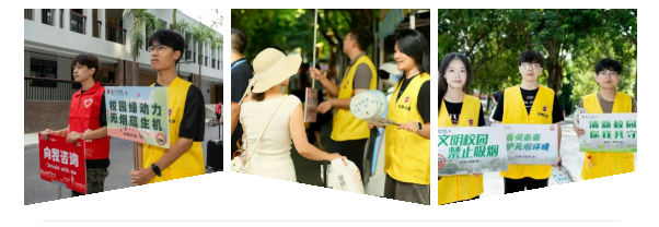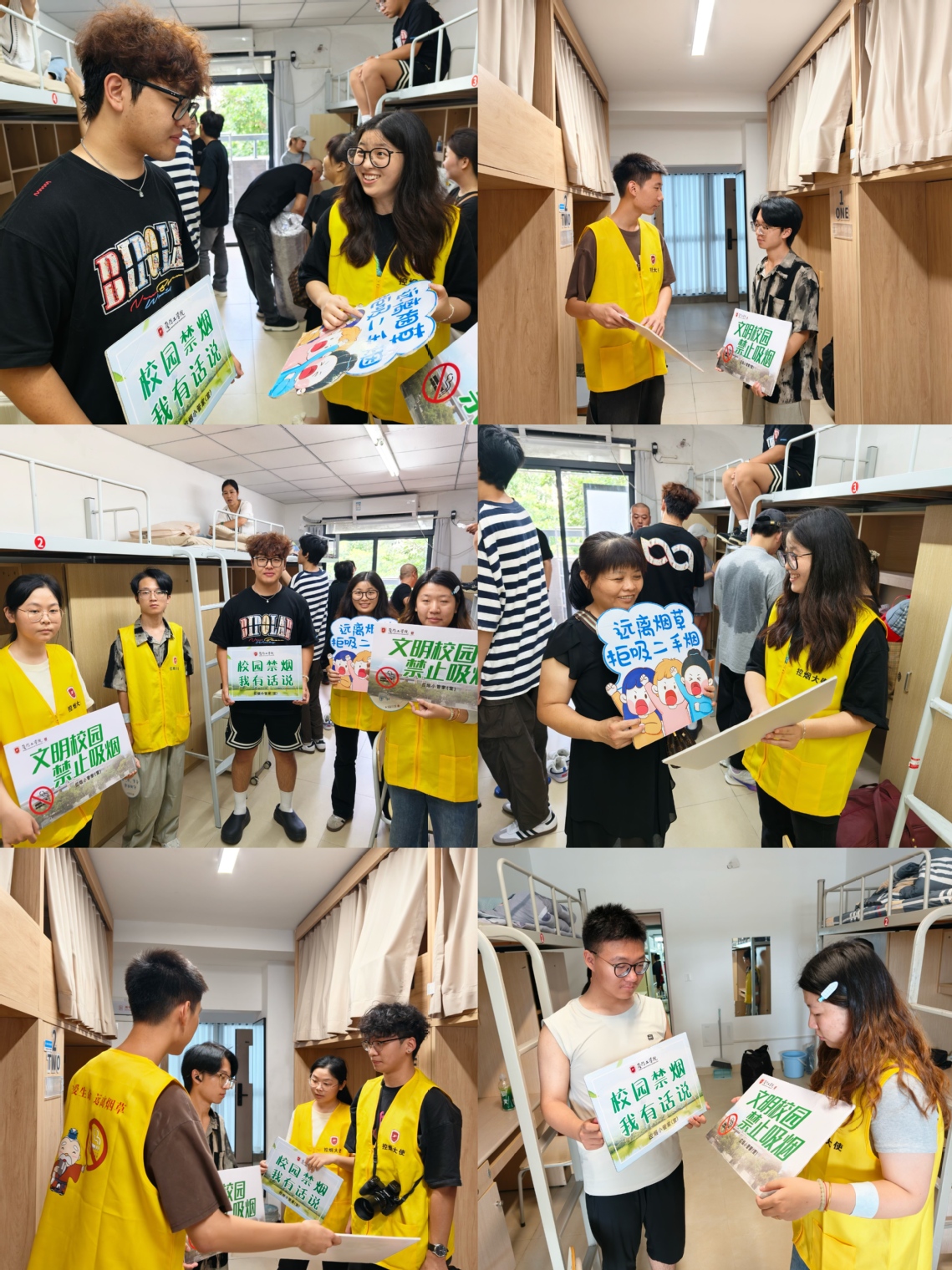 从晨曦微露到夕阳西下,他们始终精神饱满、干劲十足,不仅积极向新生和家长传递无烟校园的理念,更穿梭于校园的每一个角落,以礼貌而阳光的方式温馨劝止吸烟行为,赢得了广泛的认可与赞扬。
