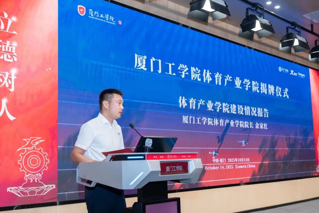 2025年10月14日下午,厦门工学院体育产业学院揭牌仪式在学校立林学术报告厅举行。学校领导、合作企业嘉宾、师生代表齐聚一堂,共同见证学校深化体教融合、推动体育产业人才培养的重要时刻。