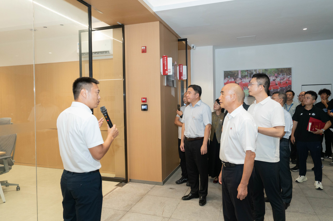 仪式结束后,嘉宾们移步至体育产业学院实地参观,了解学院教学场地、健康检测设备、理疗康复空间等功能区域,并对教学环境给予高度评价。