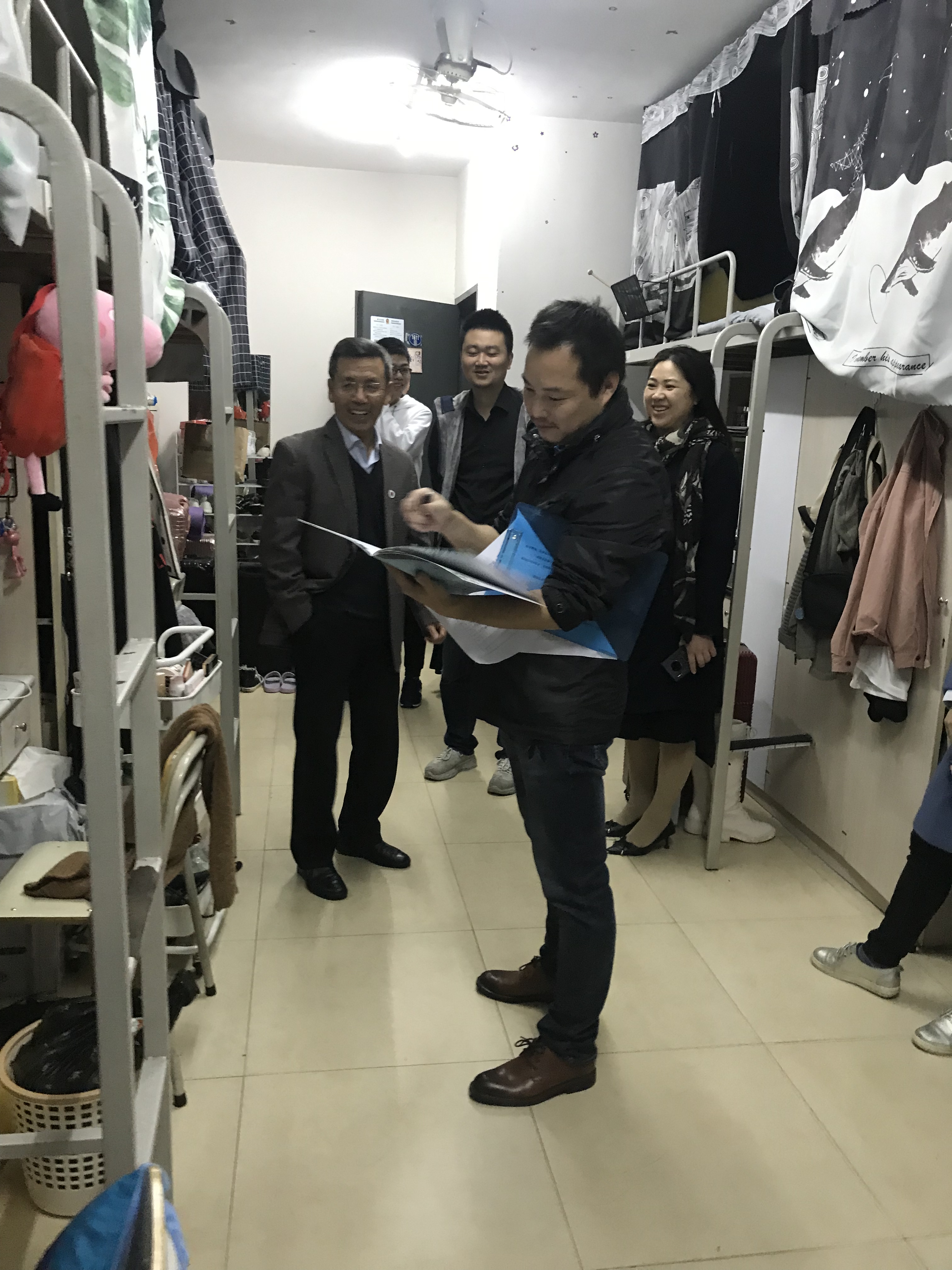 上午9点许,各检查人员在友善书院门口集合。检查前苏副校长对检查工作提出了具体要求,强调要高度关注学生宿舍安全,对检查出的安全隐患必须明确具体责任人,并限期整改。学生处对本次的检查工作进行了具体安排,随后分小组对各书院进行检查。