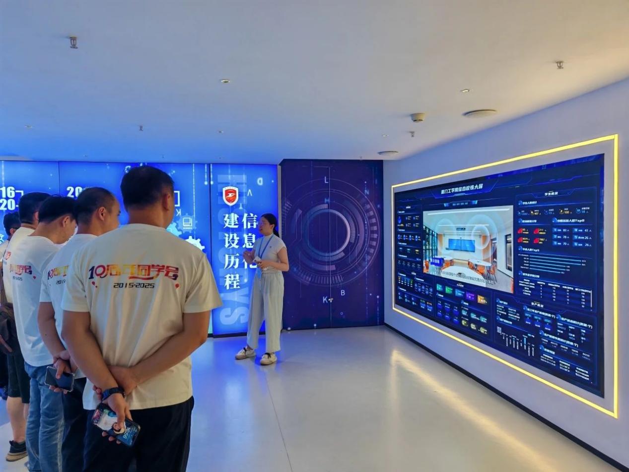 一行人的身影穿梭在教育信息文化馆的光影里,掠过青春忆时光长廊的老照片,在校友之家触摸历届学子的奋斗印记,进入A食堂感受十年间的变化,新建标准化考场的肃静、友恭与友善书院的历程简概相映成趣,绕行校园时,讲解员细说校园十年成长,熟悉的轮廓里藏着新变化,路边的草木比记忆里更繁茂,十年间的新旧景致交织,每一步都是与母校变迁的温柔相遇。