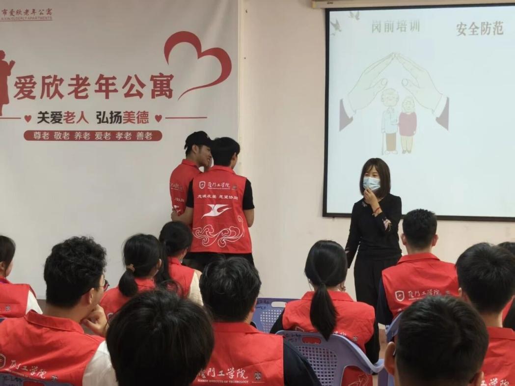 养老院负责人以专业且亲切地讲解,为志愿者们筑牢安全服务意识。培训中,志愿者同学围绕养老院志愿服务的核心理念、服务技巧等展开分享,尤其聚焦如何与长者交流的情感沟通技巧,从倾听的艺术到关怀的表达,层层递进地引导志愿者们如何以真心换真心,搭建起跨代交流的温暖桥梁。