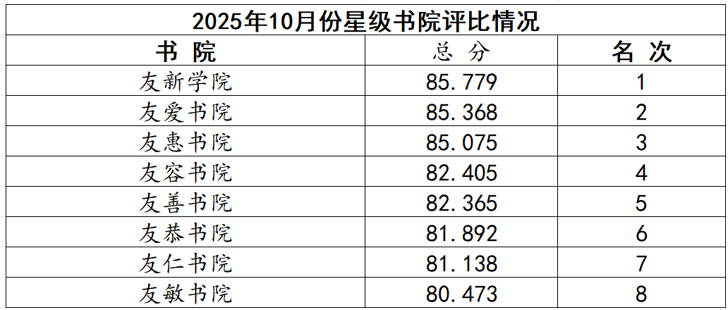 2025-2026学年第一学期10月份星级书院评比结果公布