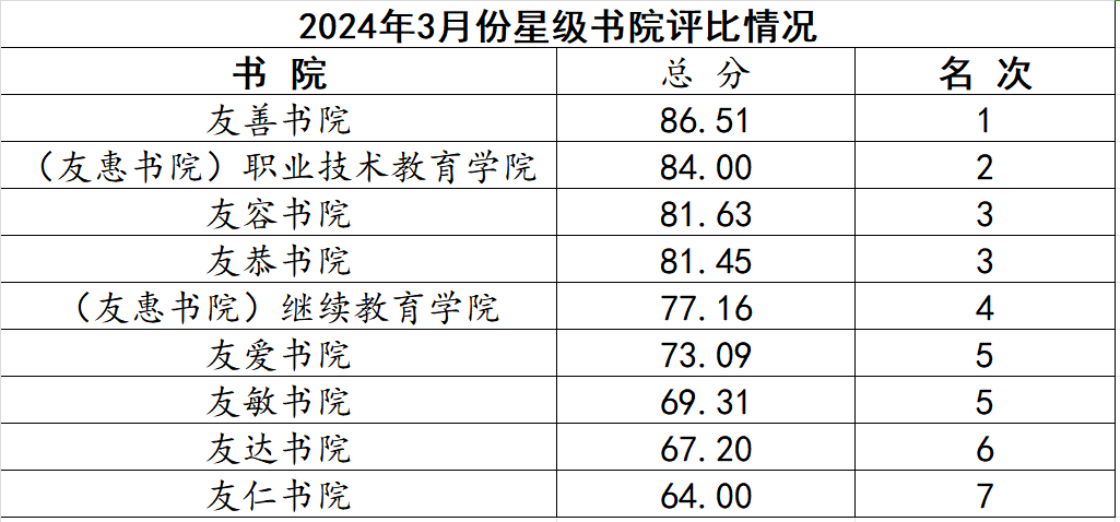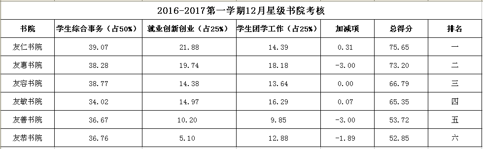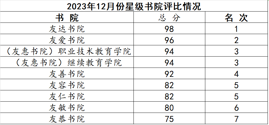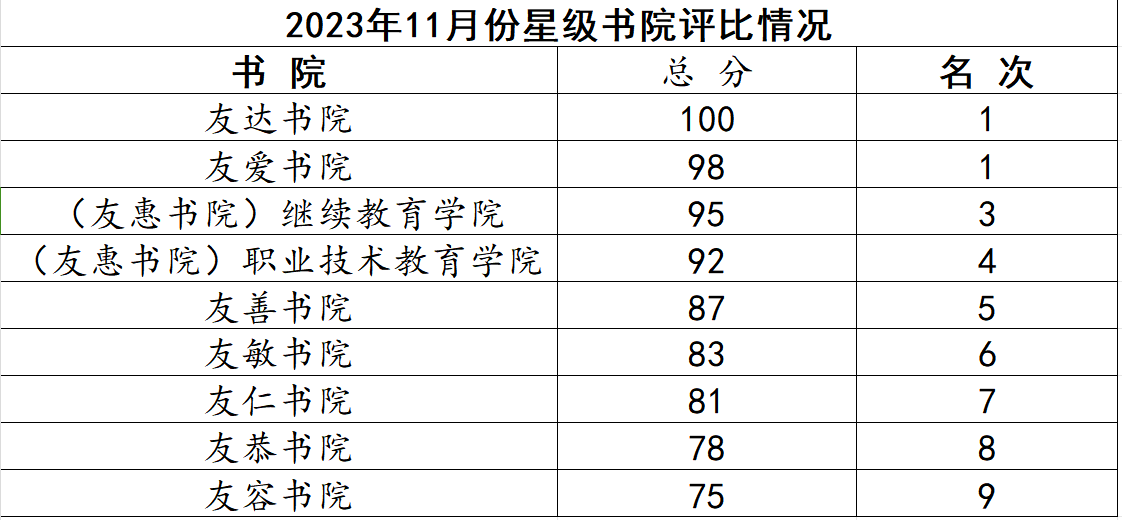 2025-2026学年第一学期11月份星级书院评比结果公布