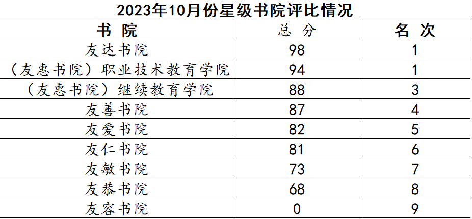 2025-2026学年第一学期10月份星级书院评比结果公布