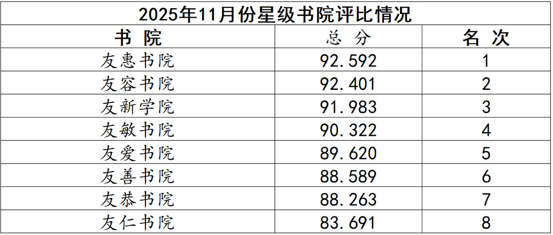 12-05 2025-2026学年第一学期11月份星级书院评比结果公布 2025-12-05