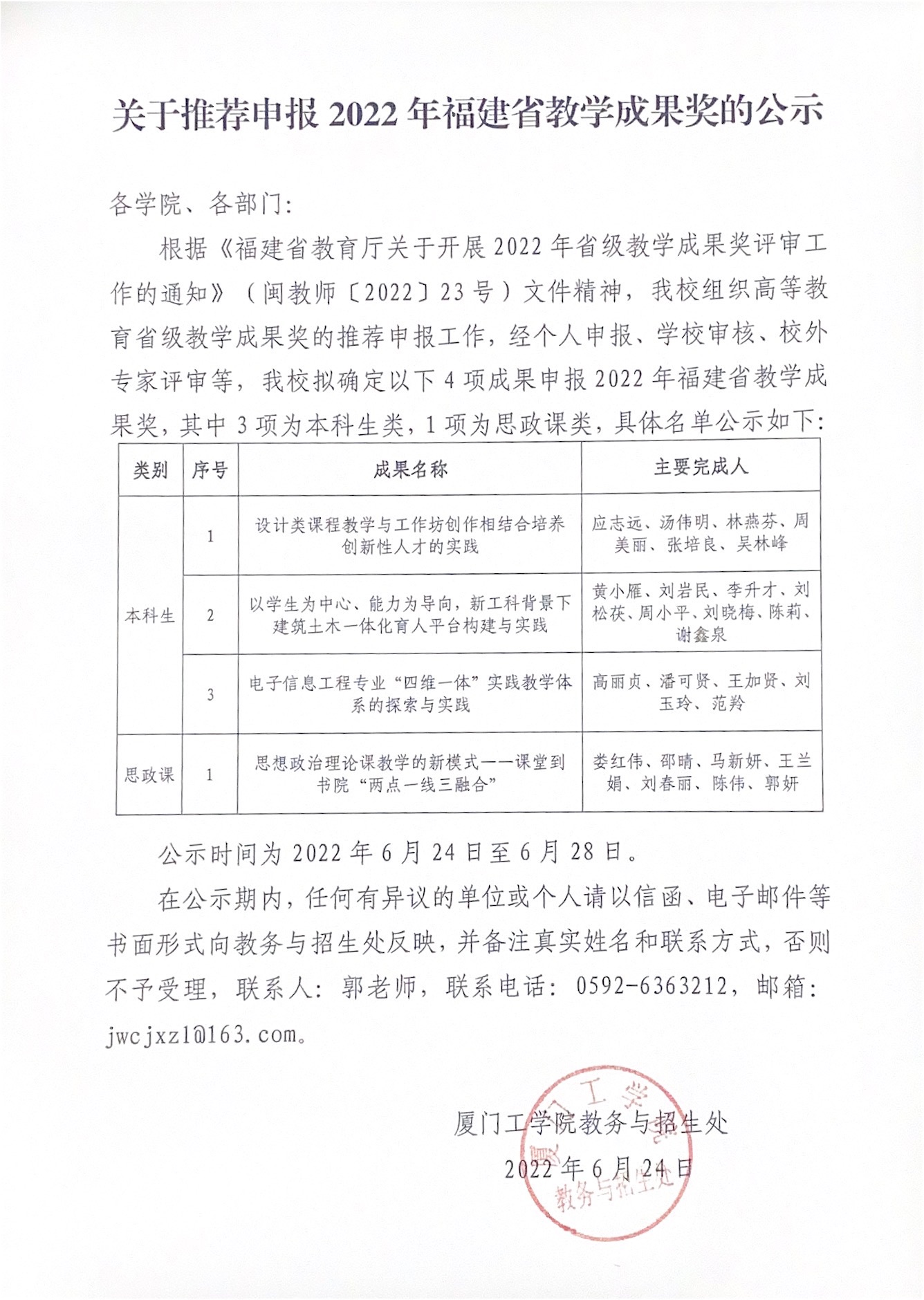 厦工教〔2022〕22号 关于举办厦门工学院第三届教师教学创新大赛的通知